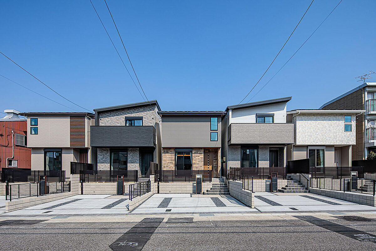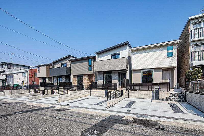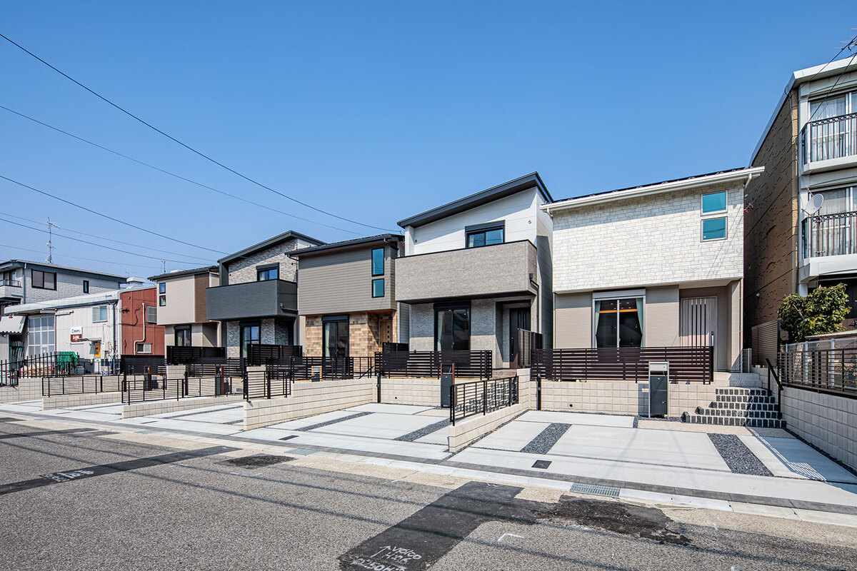 陽当たり良好な南向きの土地を選定し、全て異なったデザインと外構で構成。