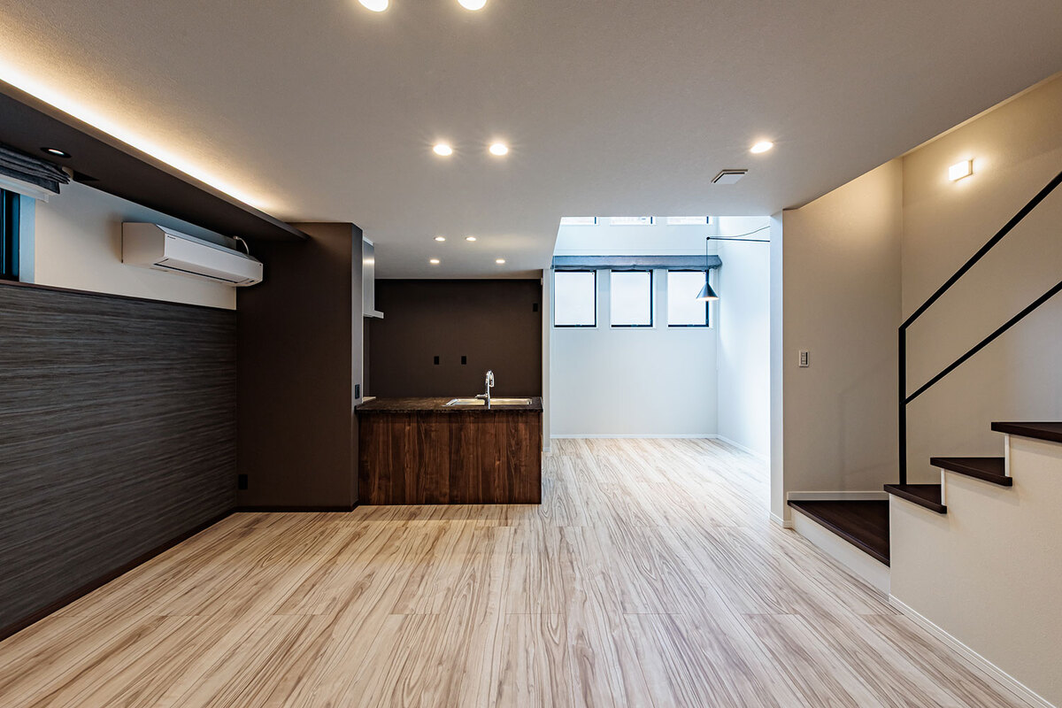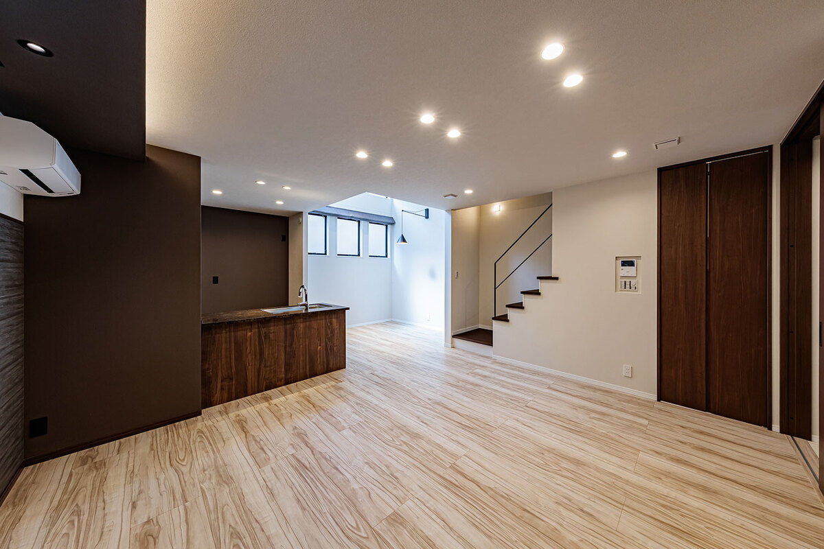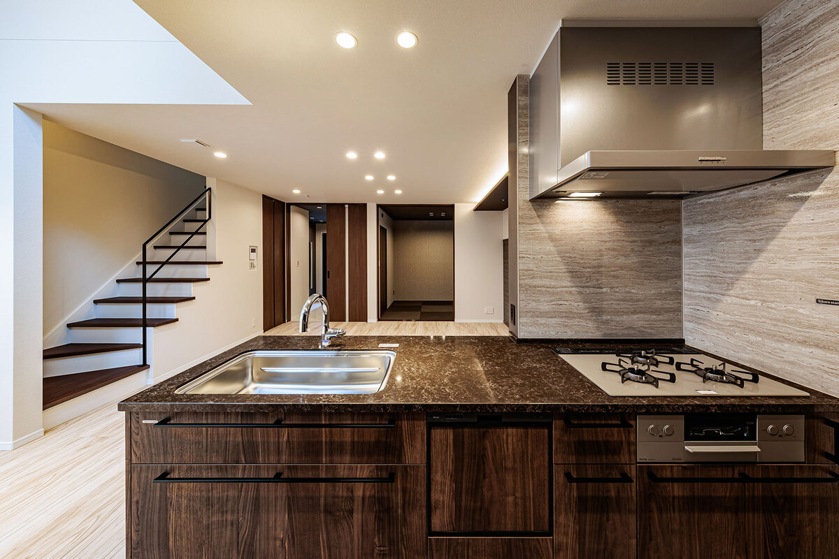 機能美と自然が調和する美景を描き、心地よく暮らせる住空間をデザインした玉善の分譲住宅。