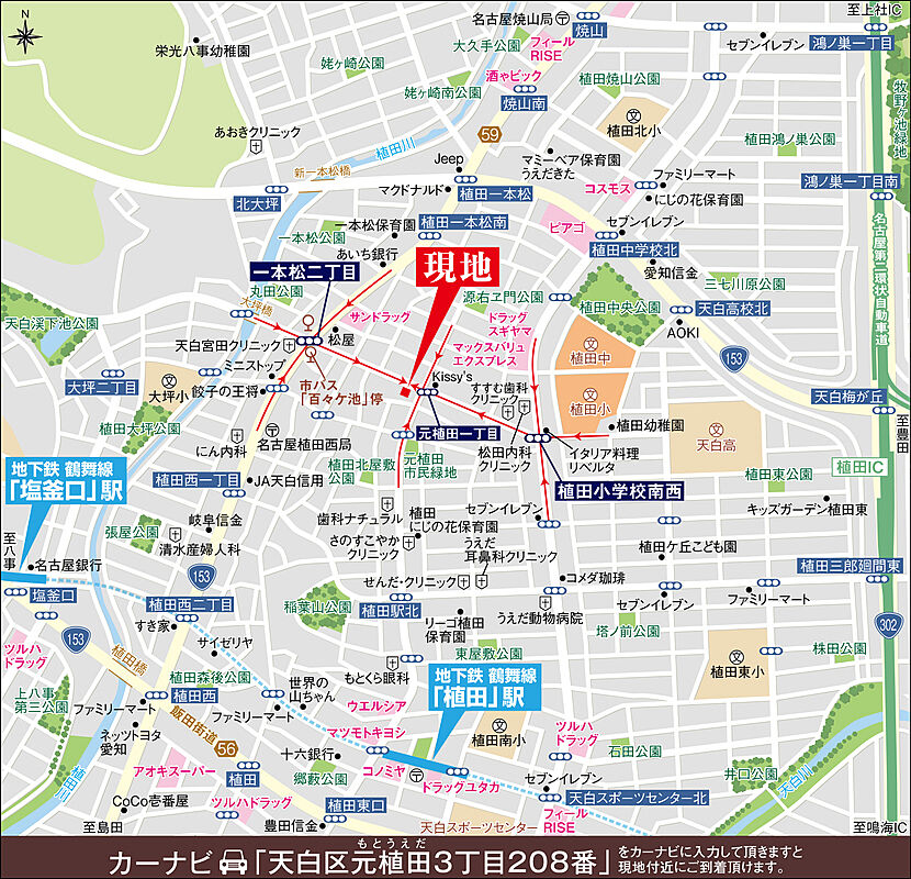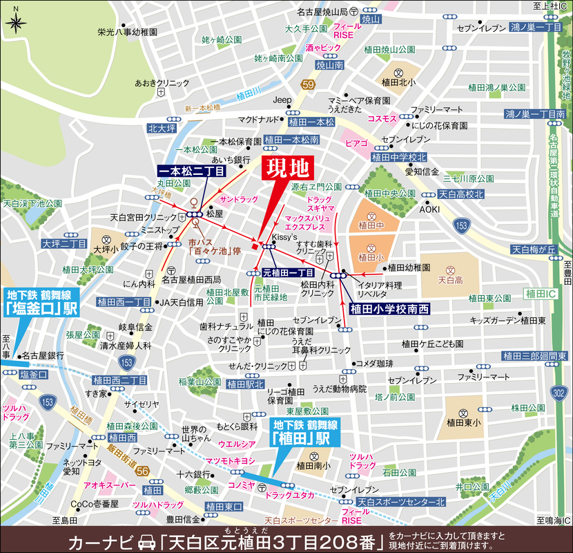 ■地下鉄鶴舞線「植田」駅徒歩11分、「塩釜口」駅徒歩15分
