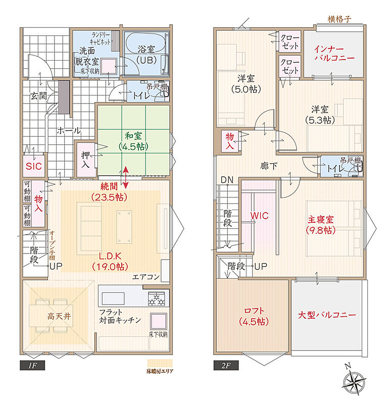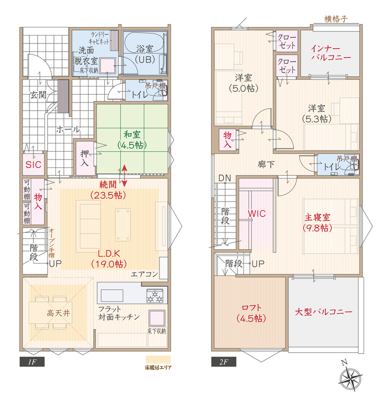 ■WIC&4.5帖ロフト付主寝室広々9.8帖
