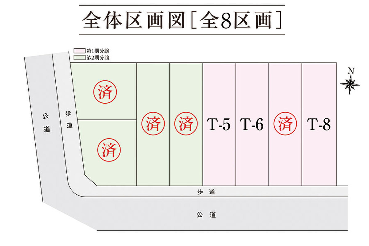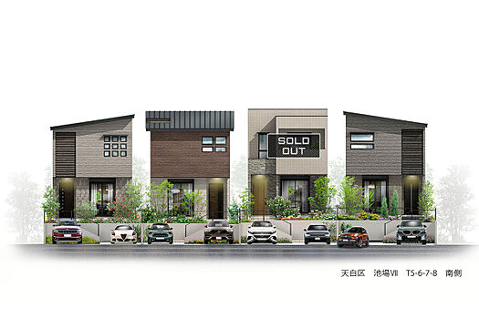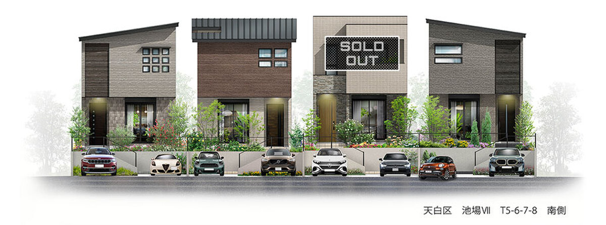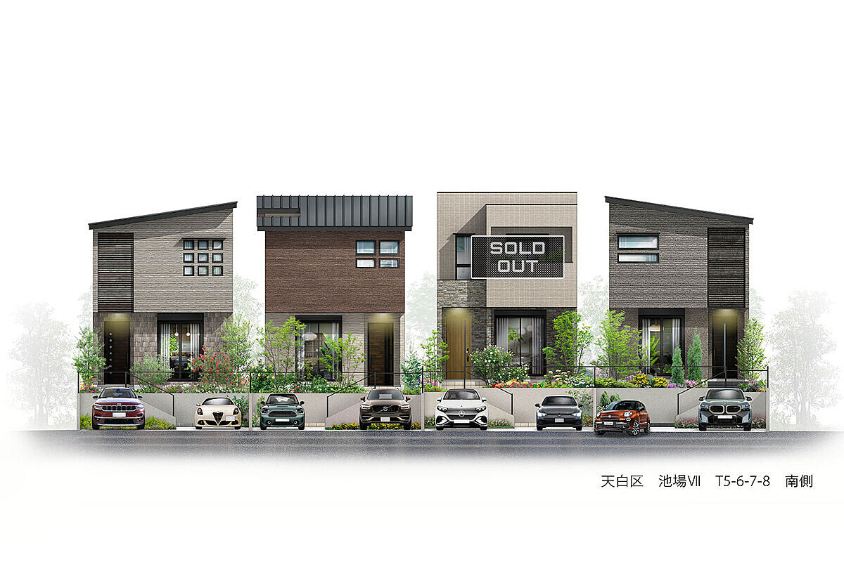 陽当たり良好な南向きの土地を選定し、全て異なったデザインと外構で構成。