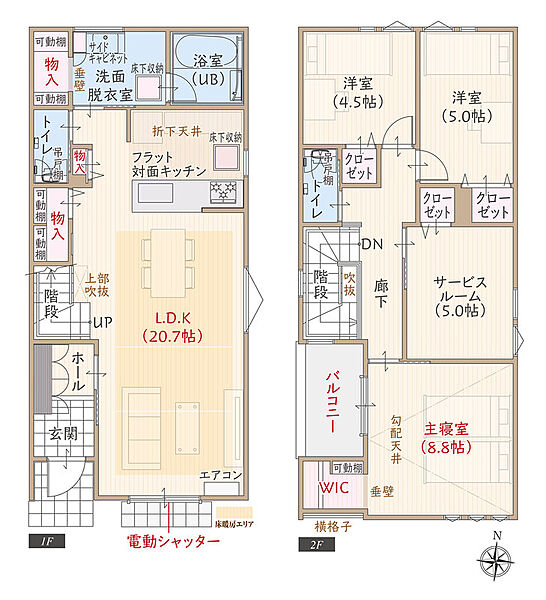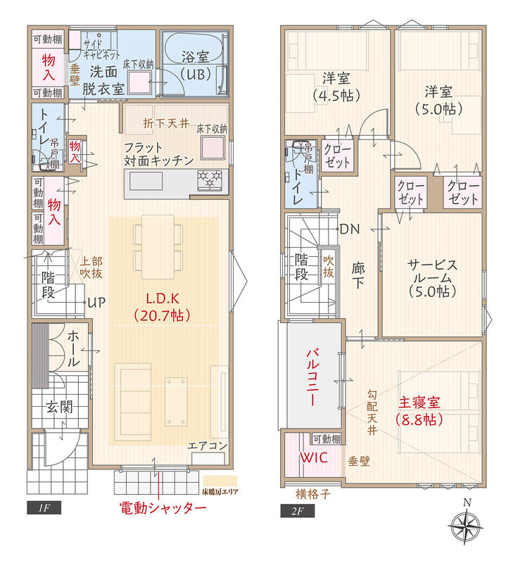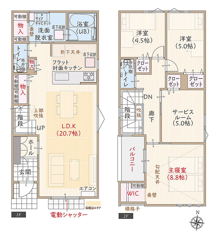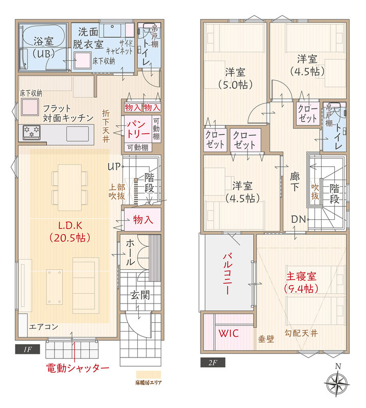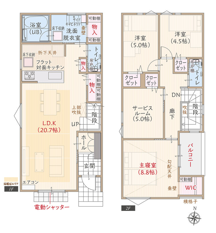 LDKエアコン/全居室カーテン&LED照明/省エネ給湯器「エコジョーズ」/浴室暖房乾燥機/床暖房/玄関大型姿見/電気自動車充電用コンセント/電動シャッター/スマートキーなど充実の標準装備