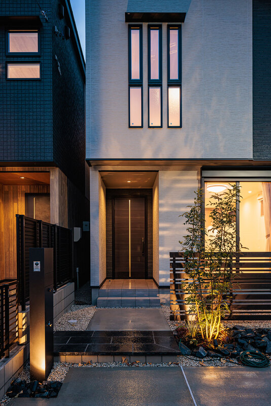 機能美と自然が調和する美景を描き、心地よく暮らせる住空間をデザインした玉善の分譲住宅。