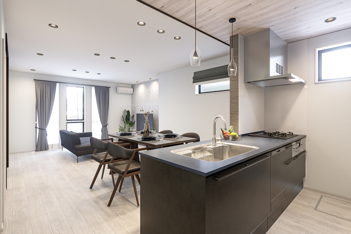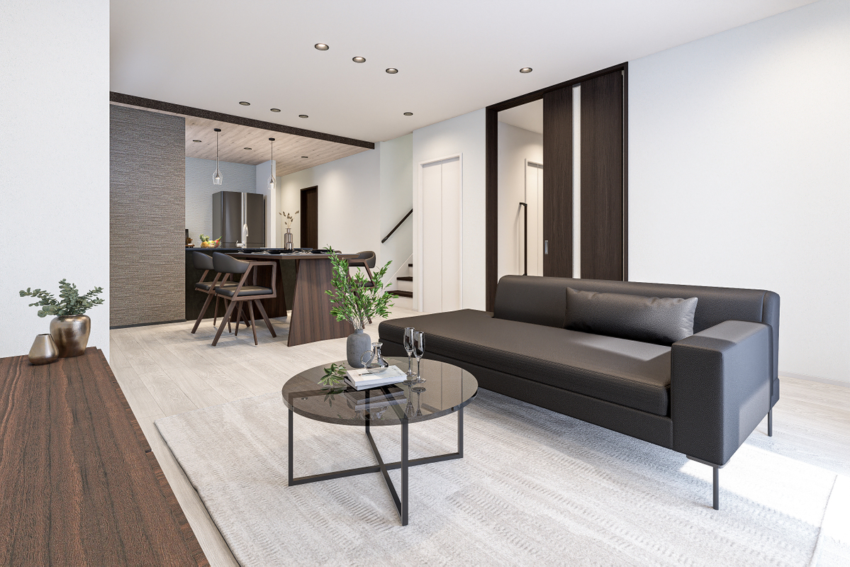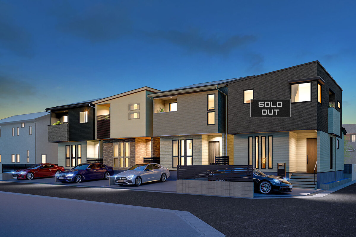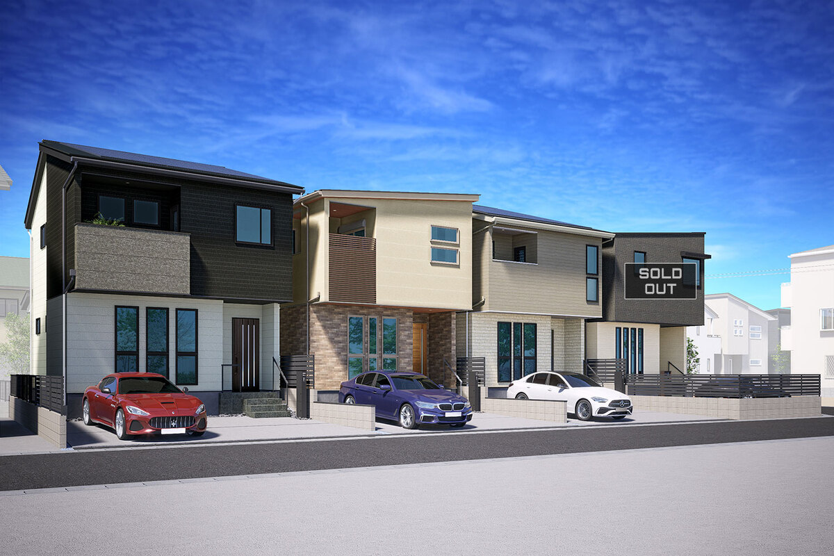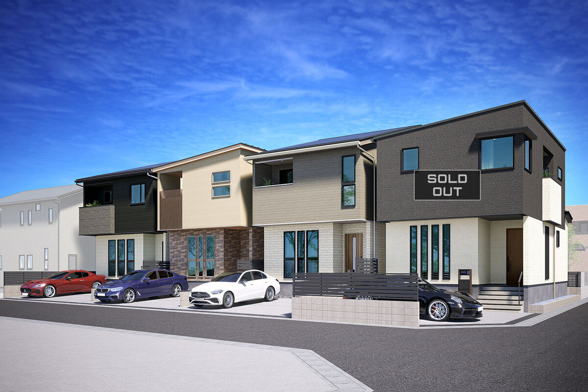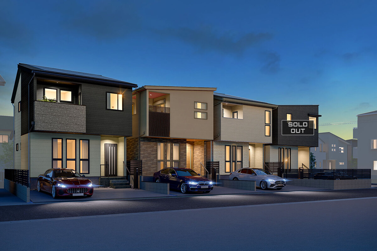 機能美と自然が調和する美景を描き、心地よく暮らせる住空間をデザインした玉善の分譲住宅。