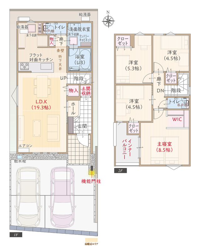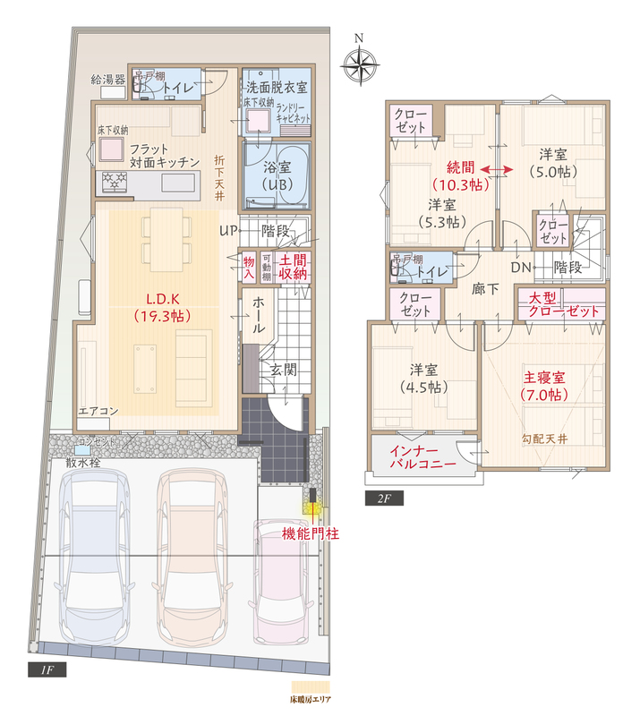 LDKエアコン/全居室カーテン&LED照明/省エネ給湯器「エコジョーズ」/浴室暖房乾燥機/床暖房/玄関大型姿見/電気自動車充電用コンセント/スマートキーなど充実の標準装備