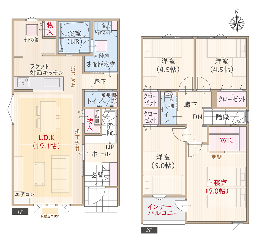 魅力2 開放的なLDK広々19帖超、家事動線良好&収納充実&プライベートエリアも快適!