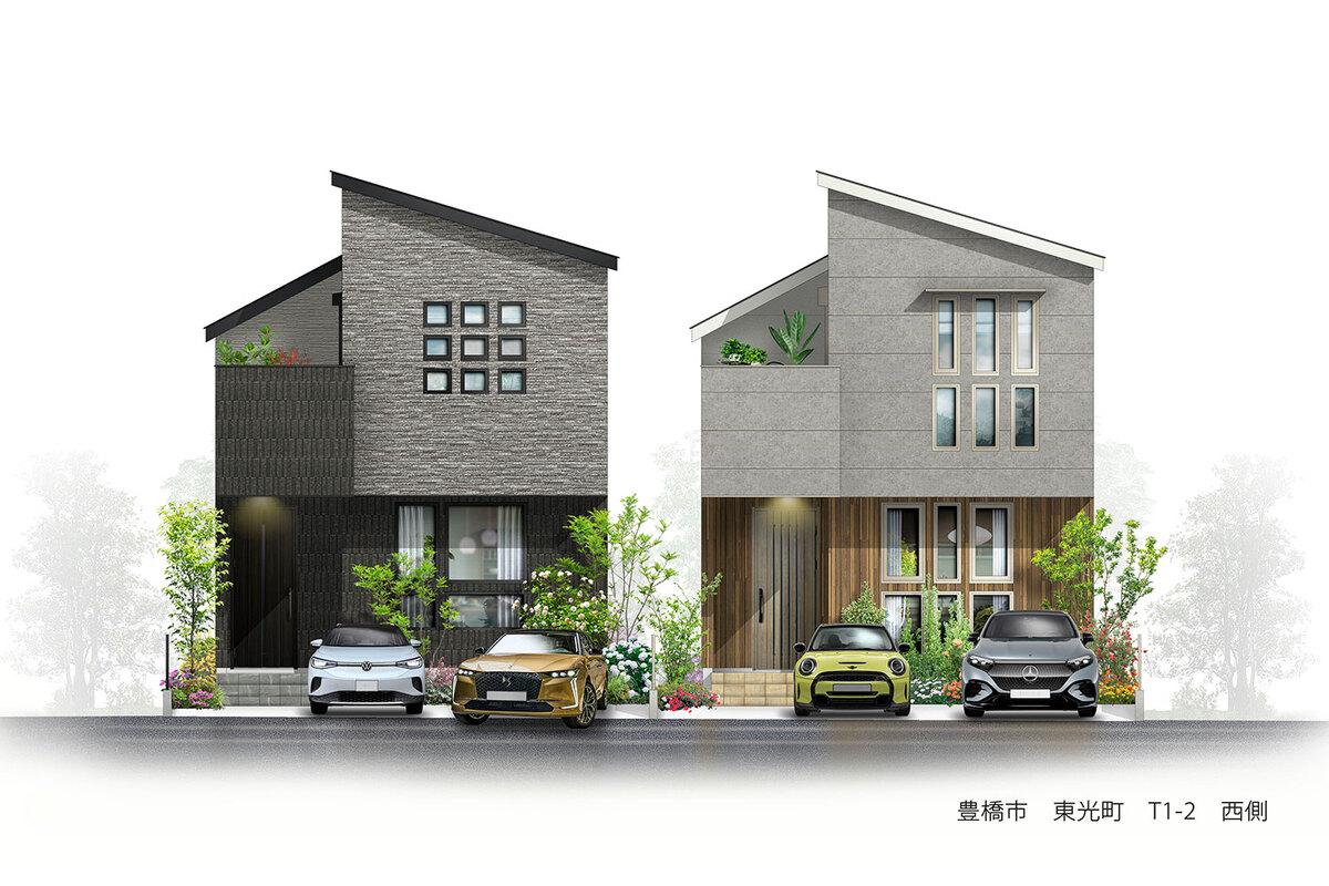 機能美と自然が調和する美景を描き、心地よく暮らせる住空間をデザインした玉善の分譲住宅。