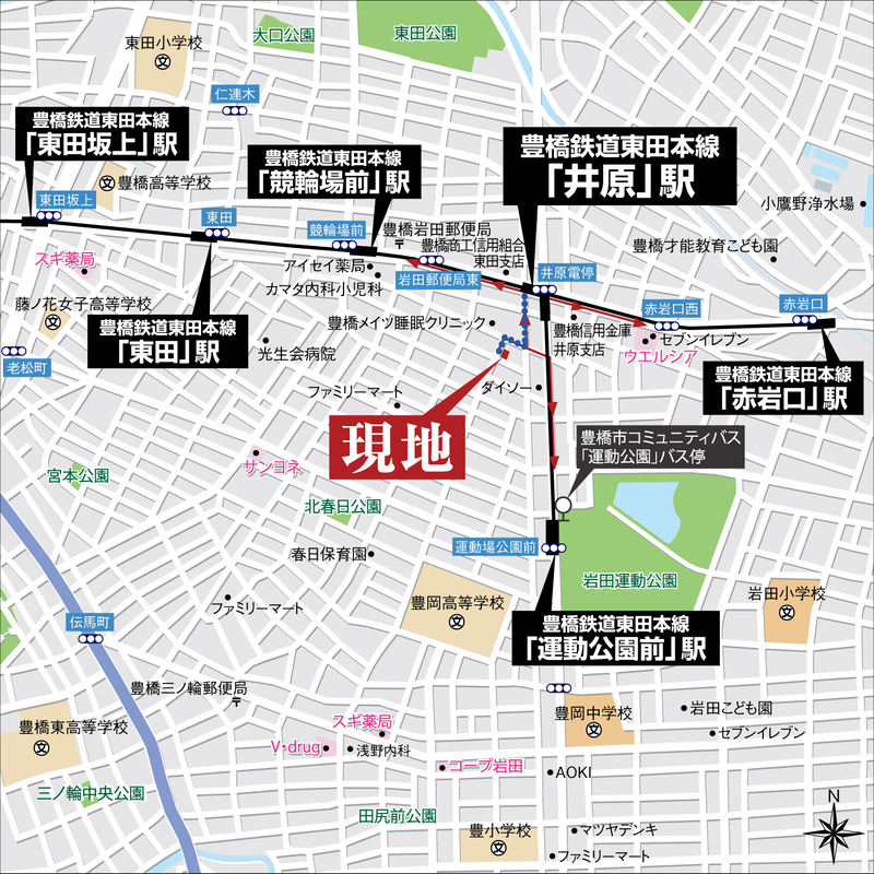 - ※地図上に表示される各種アイコンなどの情報は、おおよその所在地を表すものであり、物件・施設などの地点を保証するものではありません。