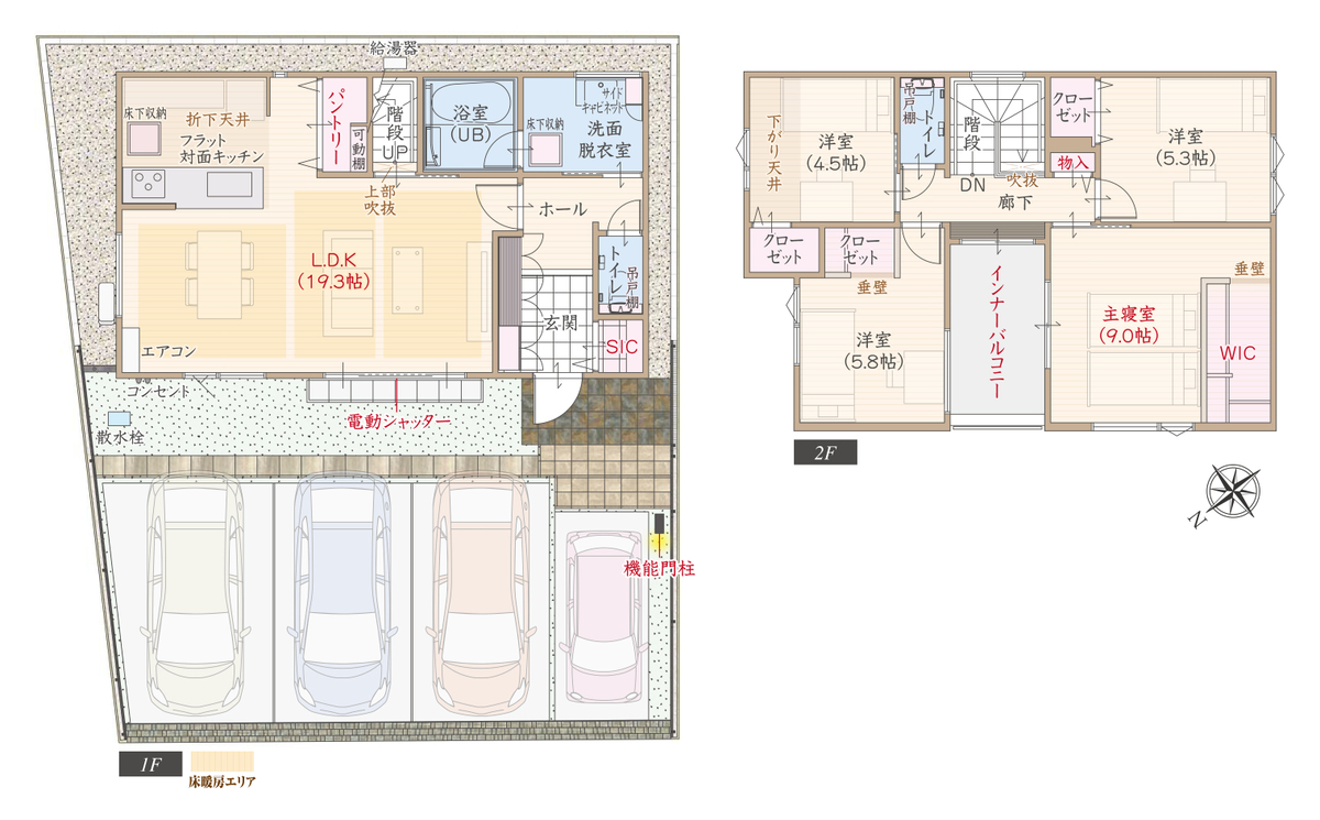 魅力2 ワイド間口19.3帖、収納充実&生活動線スムーズなオールフローリングプラン