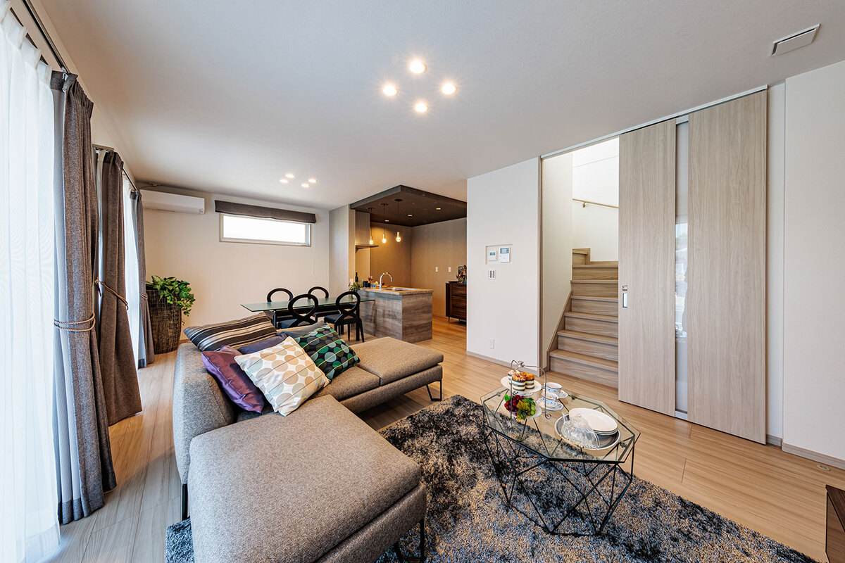 LDKエアコン/全居室カーテン&LED照明/省エネ給湯器「エコジョーズ」/浴室暖房乾燥機/床暖房/玄関大型姿見/電気自動車充電用コンセント/電動シャッター/スマートキーなど充実の標準装備