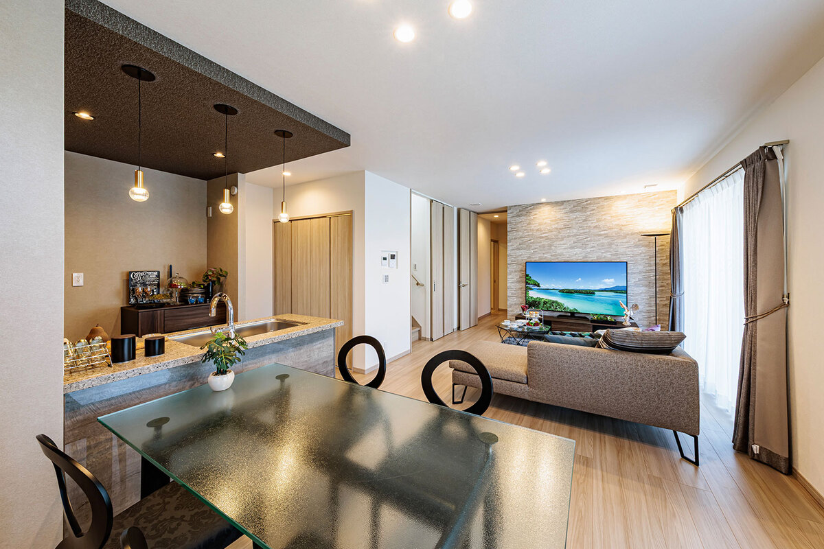 機能美と自然が調和する美景を描き、心地よく暮らせる住空間をデザインした玉善の分譲住宅。