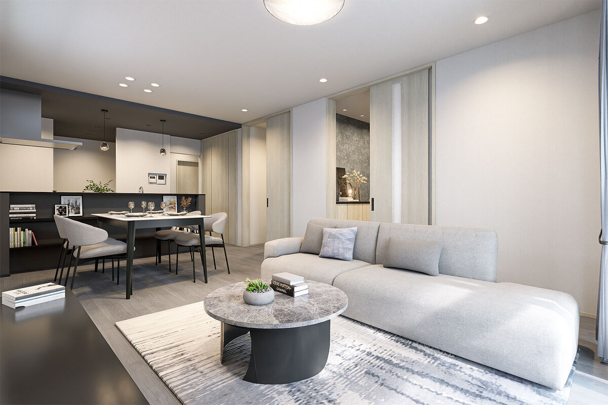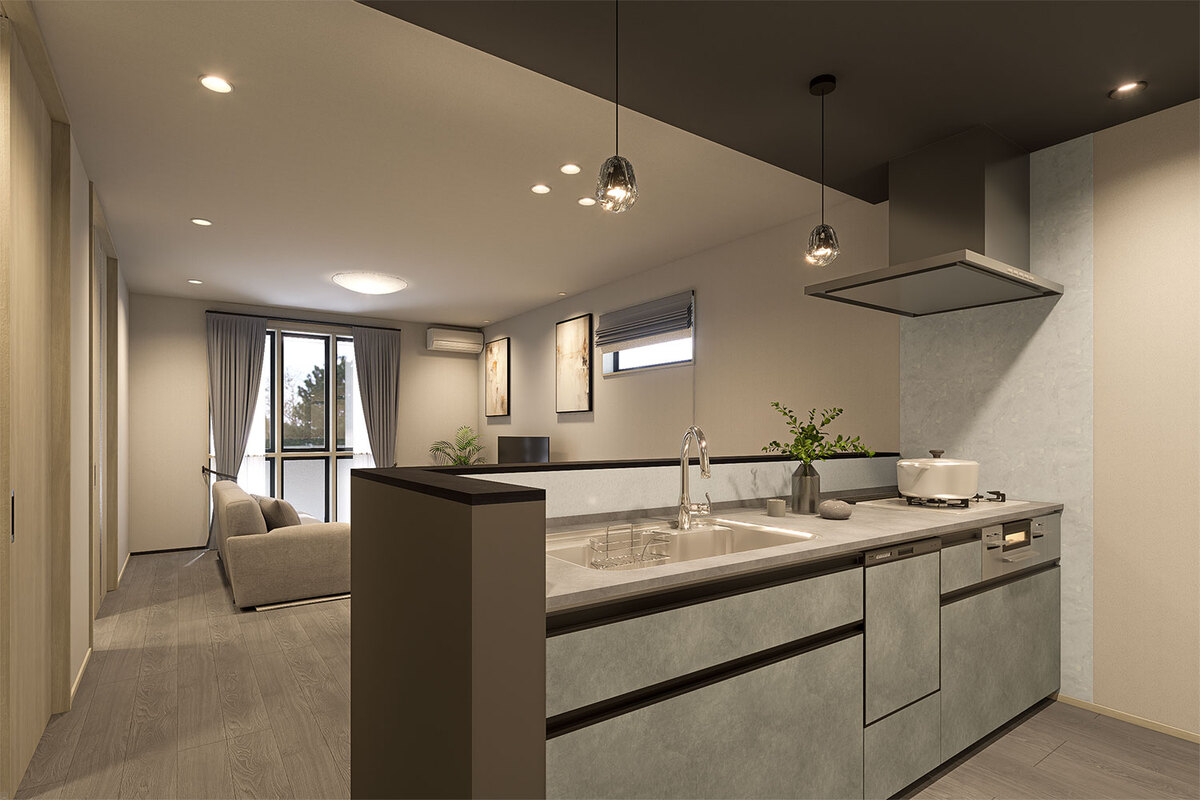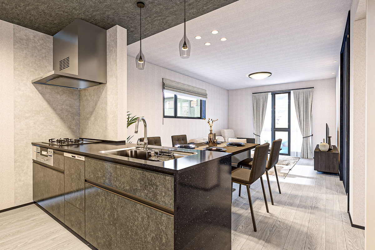 機能美と自然が調和する美景を描き、心地よく暮らせる住空間をデザインした玉善の分譲住宅。