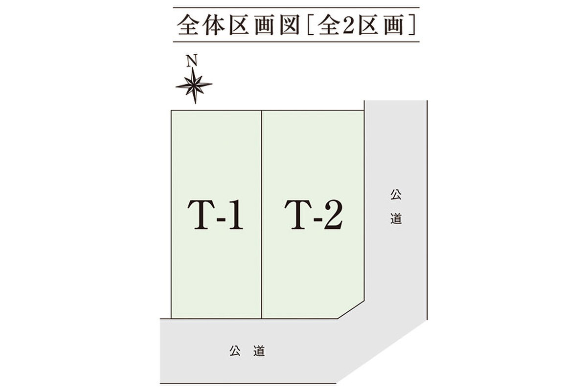 | 駐車場 | 2台 ~ 3台(T-1棟3台、T-2棟2台) | 道路の幅員 | 南側公道5.0m・東側公道4.9m |