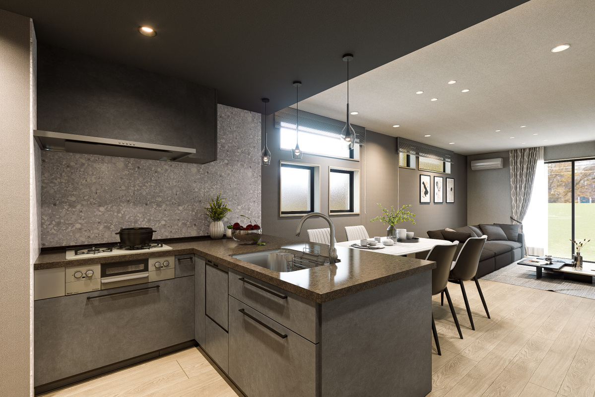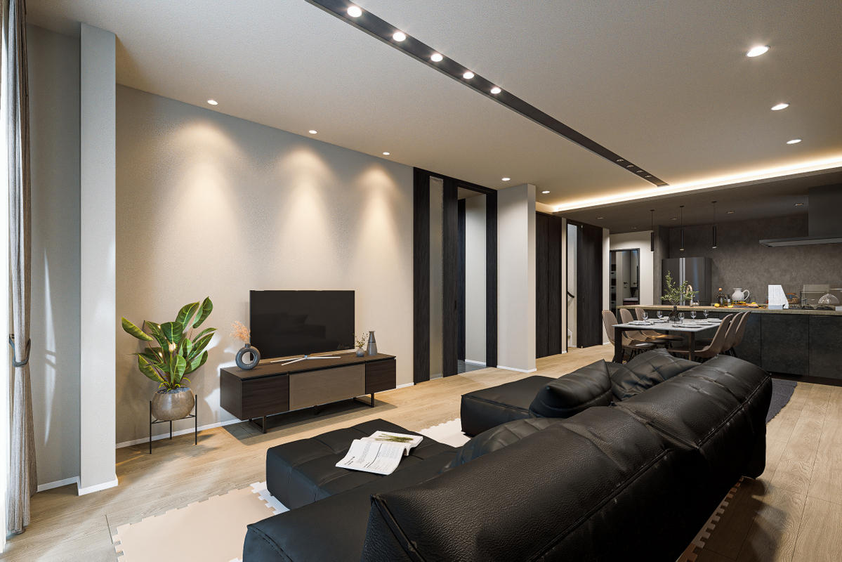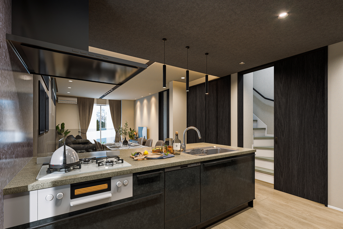 機能美と自然が調和する美景を描き、心地よく暮らせる住空間をデザインした玉善の分譲住宅。