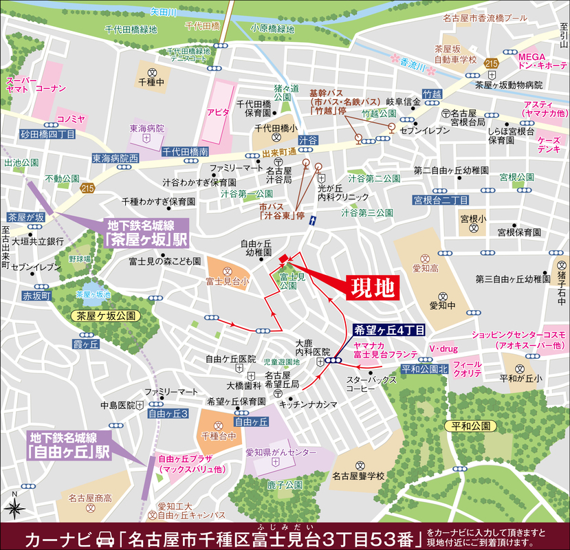 ■地下鉄名城線「茶屋ヶ坂」駅徒歩15分、「自由ヶ丘」駅徒歩16分