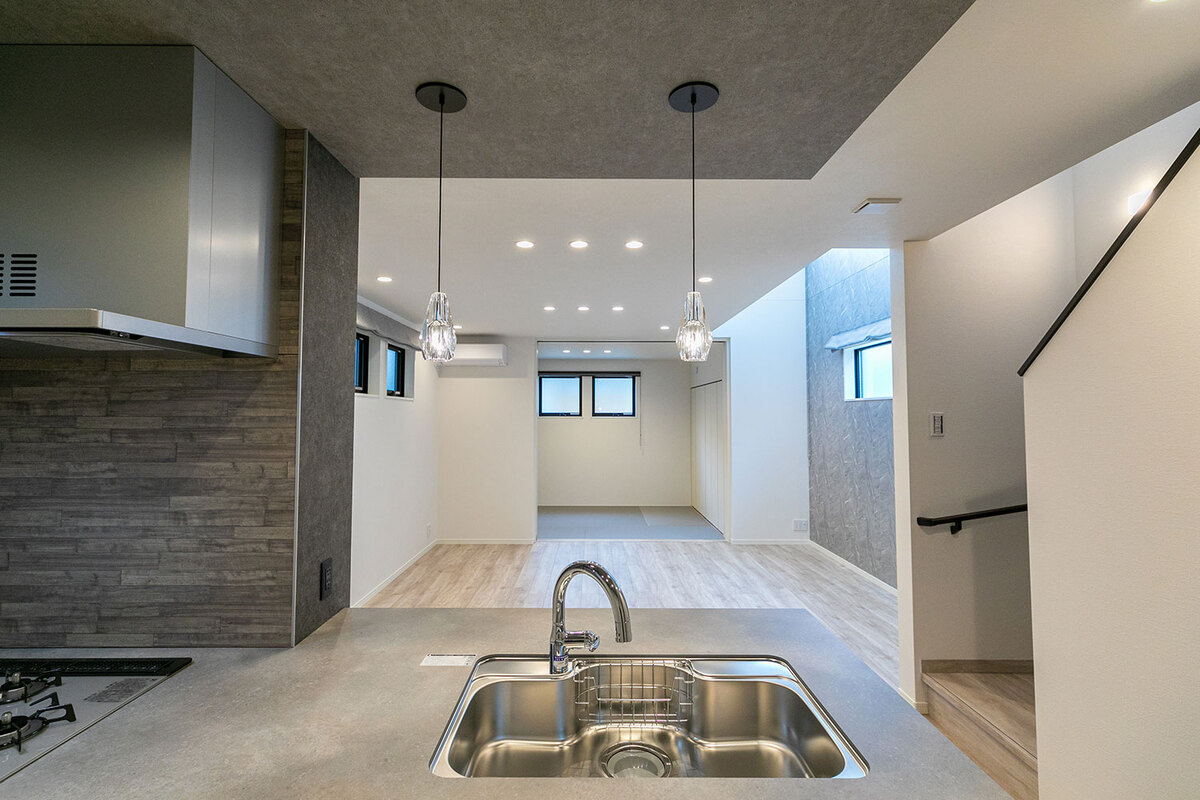 機能美と自然が調和する美景を描き、心地よく暮らせる住空間をデザインした玉善の分譲住宅。