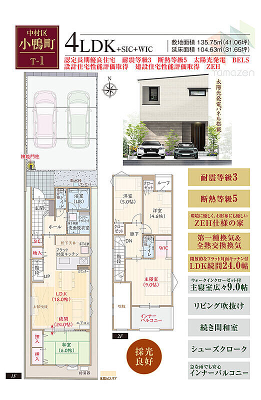 魅力1 太陽光発電搭載、長期優良住宅&住宅性能W取得、高断熱&安心の耐震・制震構造