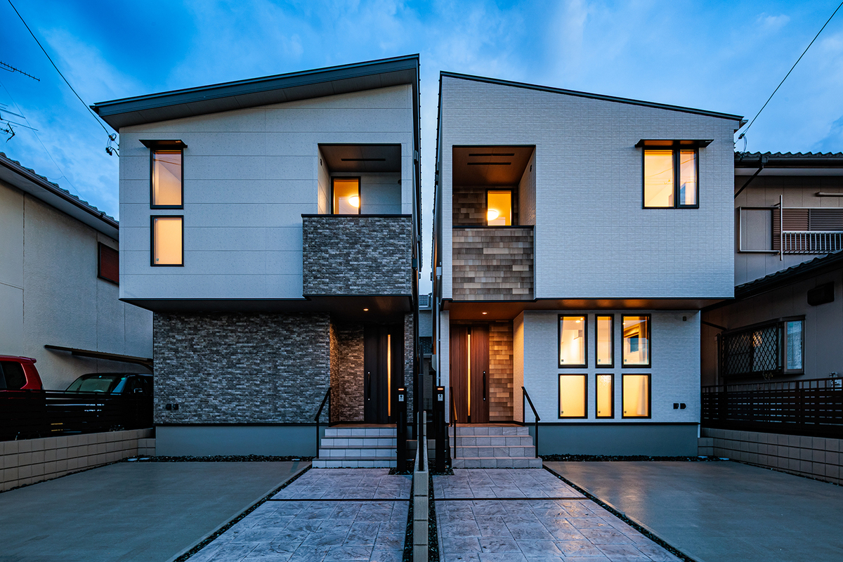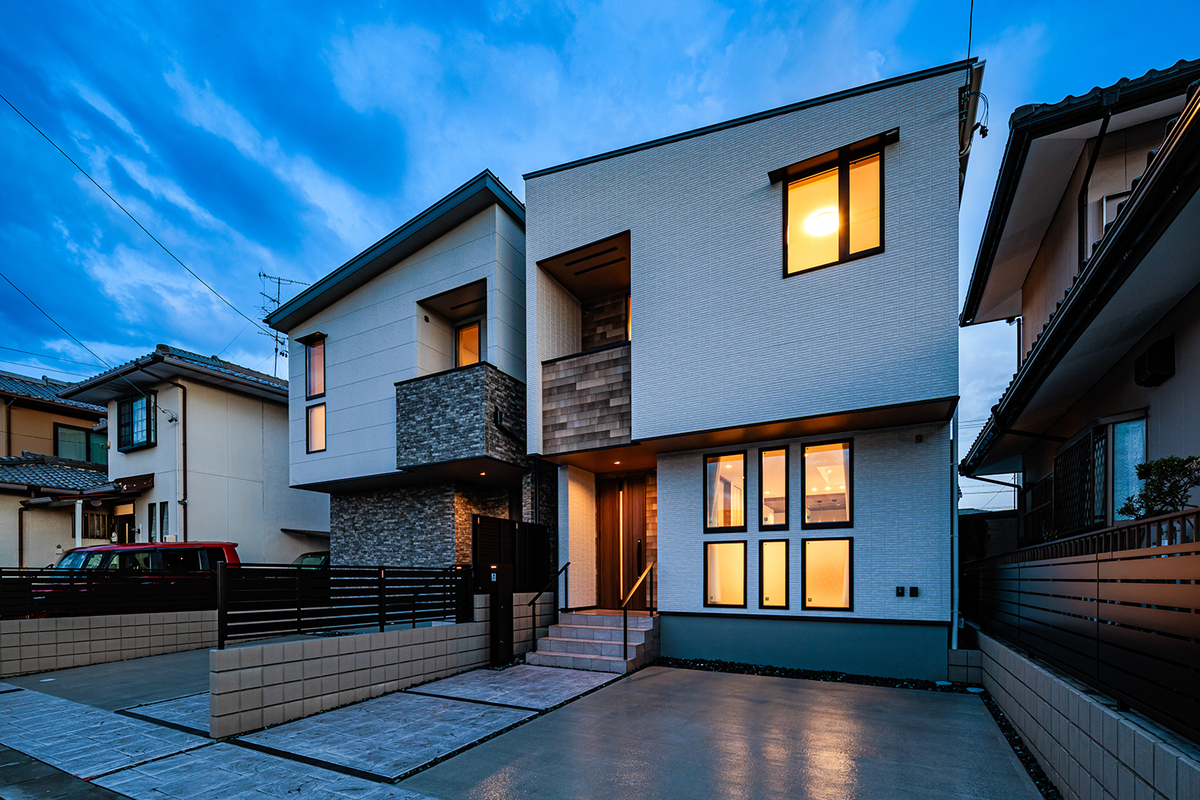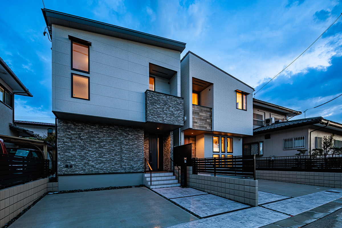 機能美と自然が調和する美景を描き、心地よく暮らせる住空間をデザインした玉善の分譲住宅。