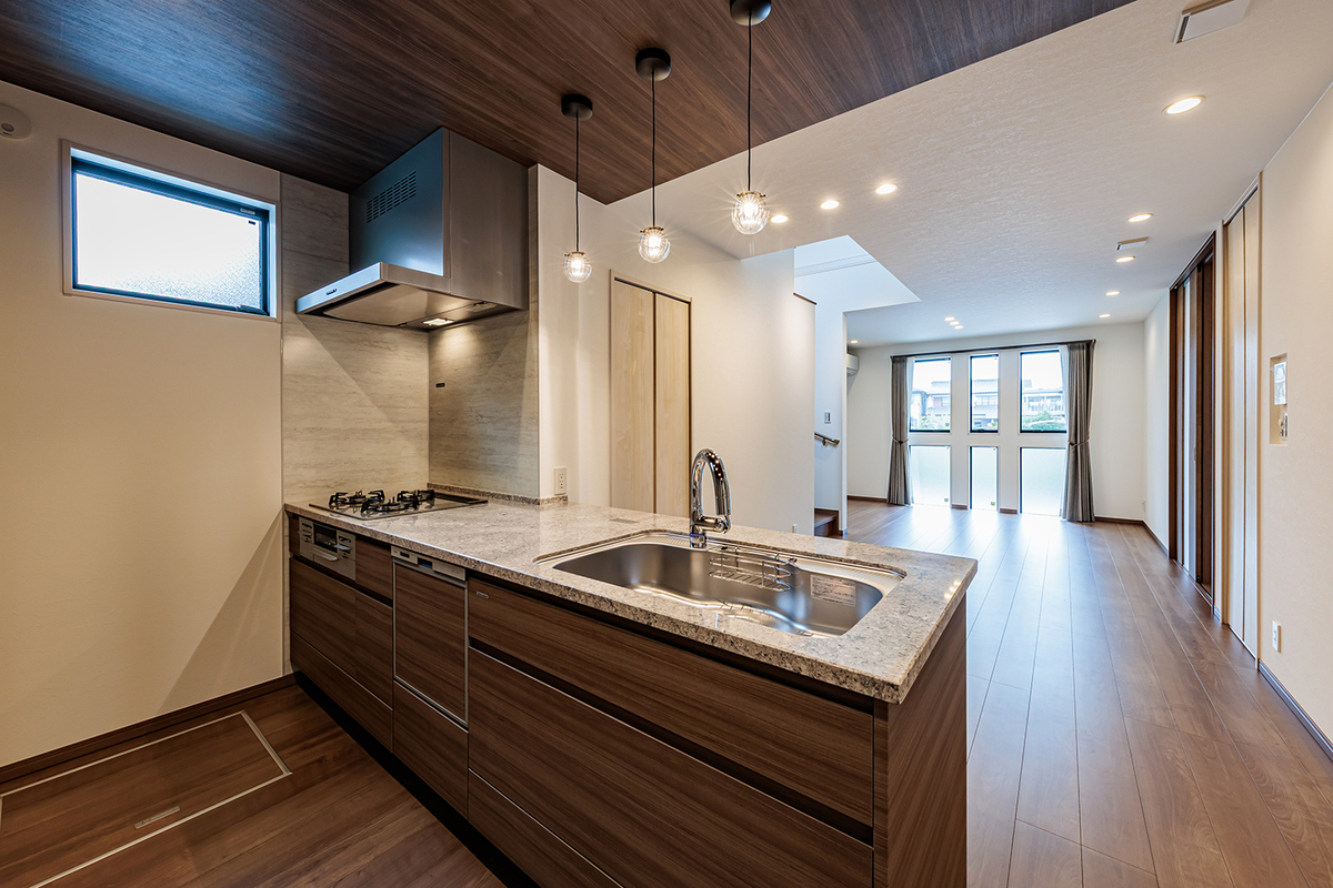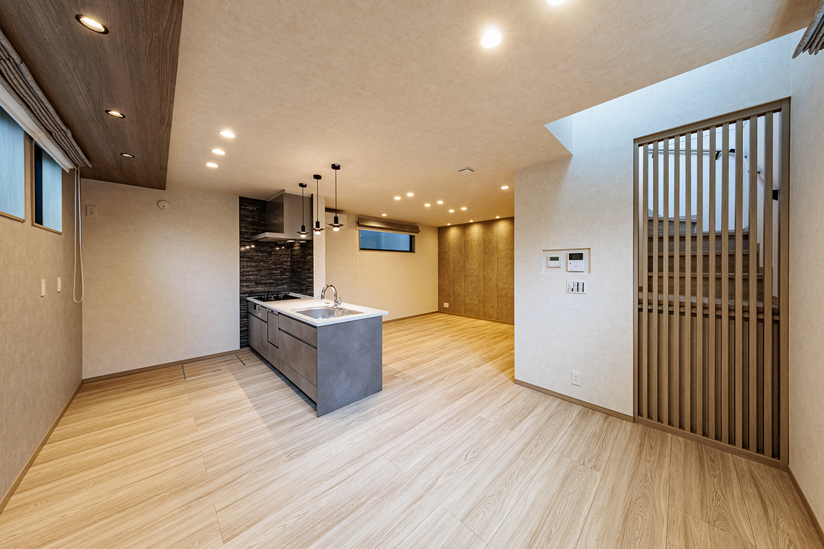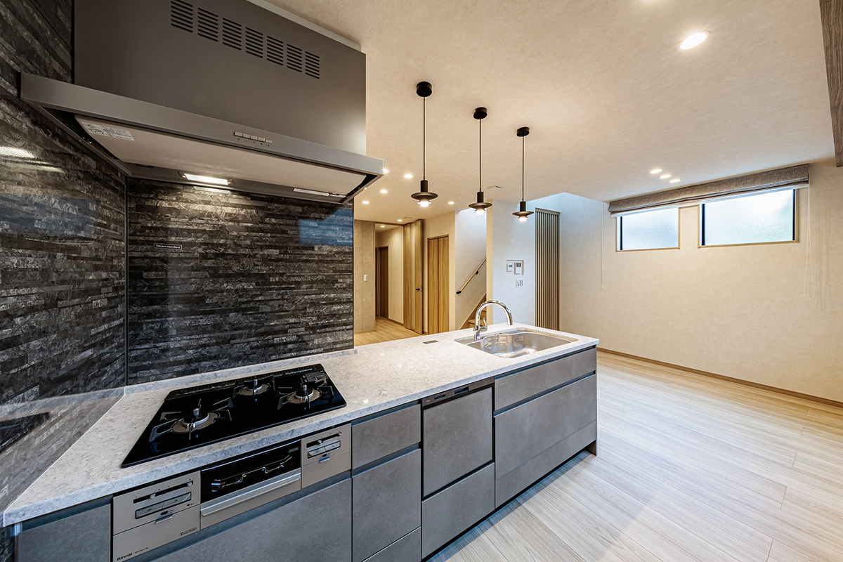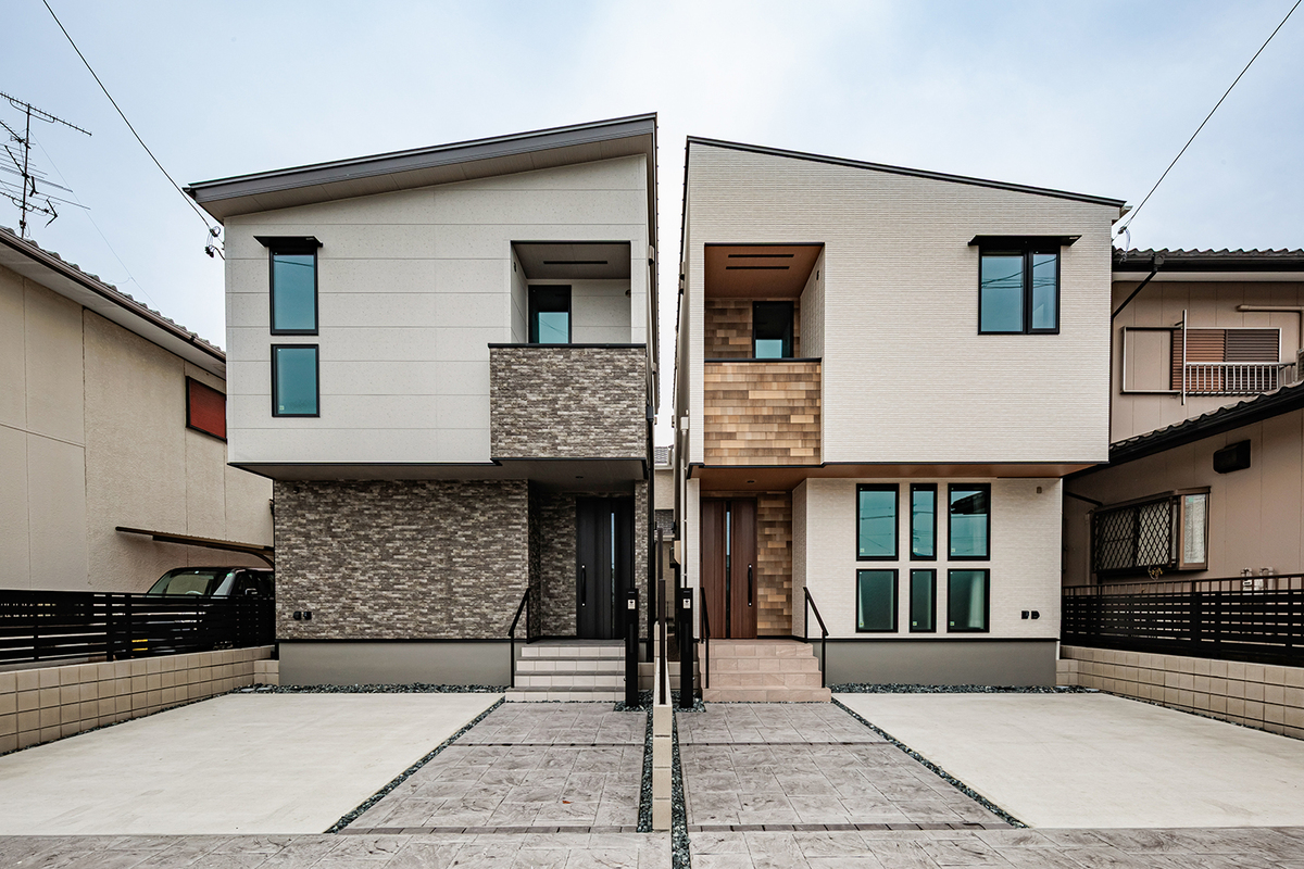 機能美と自然が調和する美景を描き、心地よく暮らせる住空間をデザインした玉善の分譲住宅。