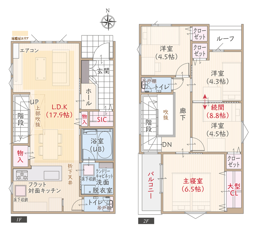 - 103.76m2・103.97m2(31.38坪・31.45坪)