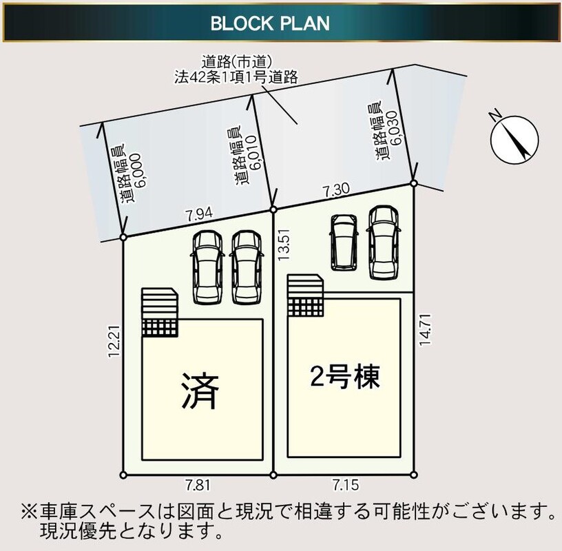 | 駐車場 | 1台 ~ 2台 | 道路の幅員 | 北東側約6m |