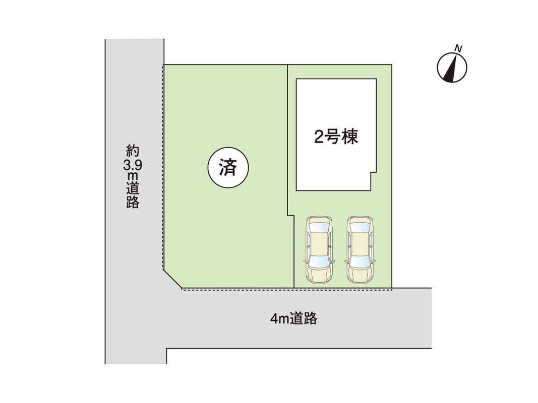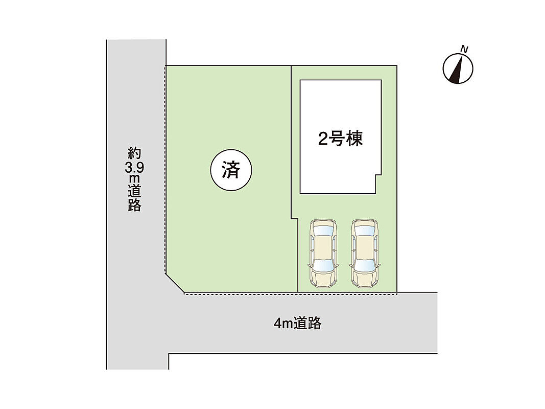 | 駐車場 | 2台 | 道路の幅員 | 南側約4m |