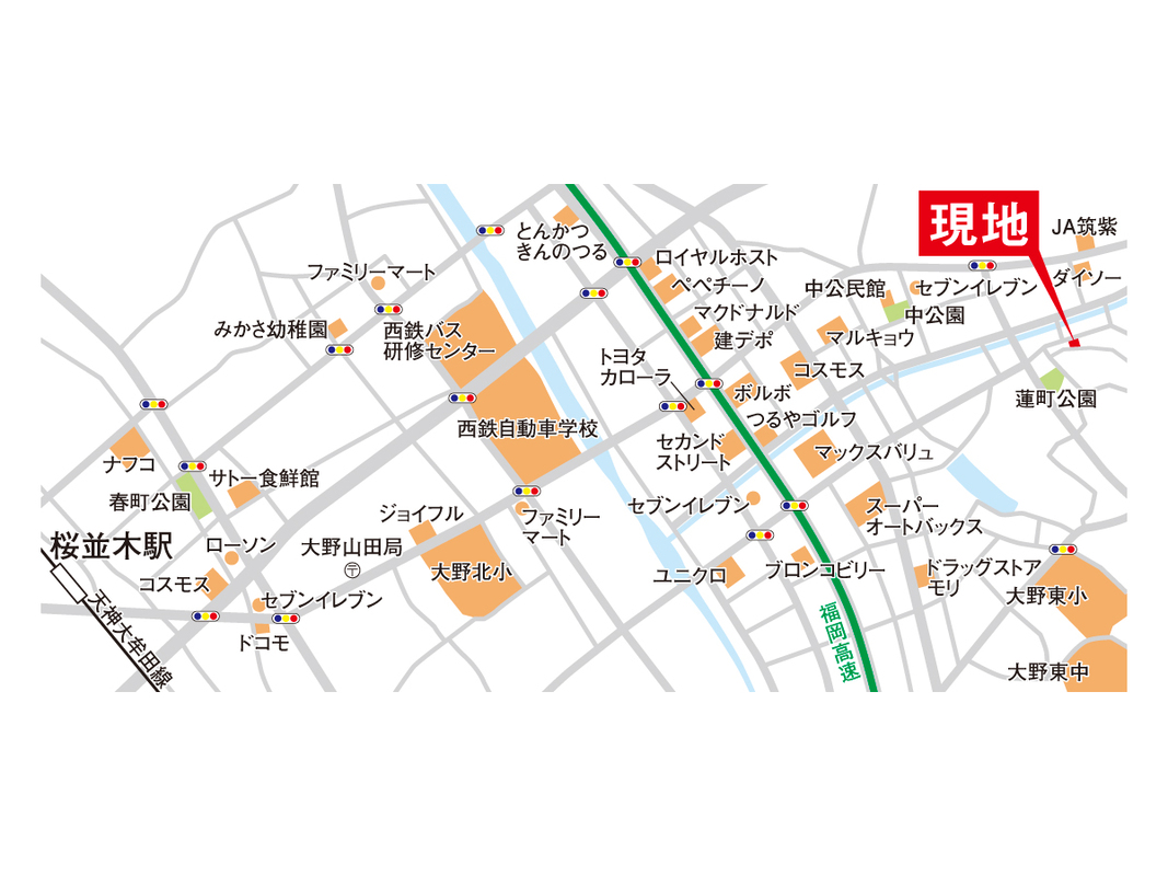 西鉄天神大牟田線「桜並木」駅 西鉄バス11分 「変電所前」バス停 徒歩4分 |