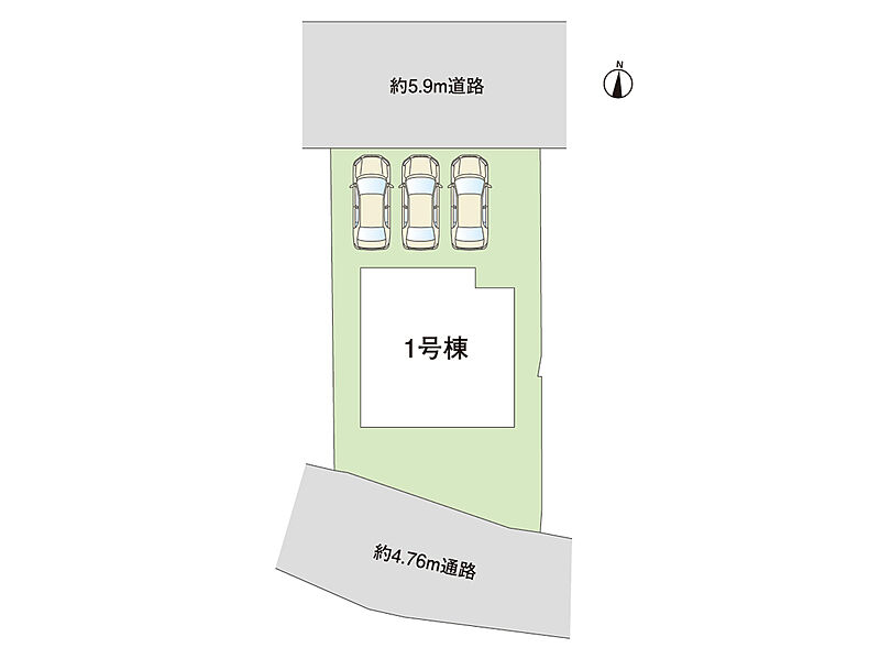 | 駐車場 | 2台 ~ 3台 | 道路の幅員 | 北側約5.99m、南側約4.76m |