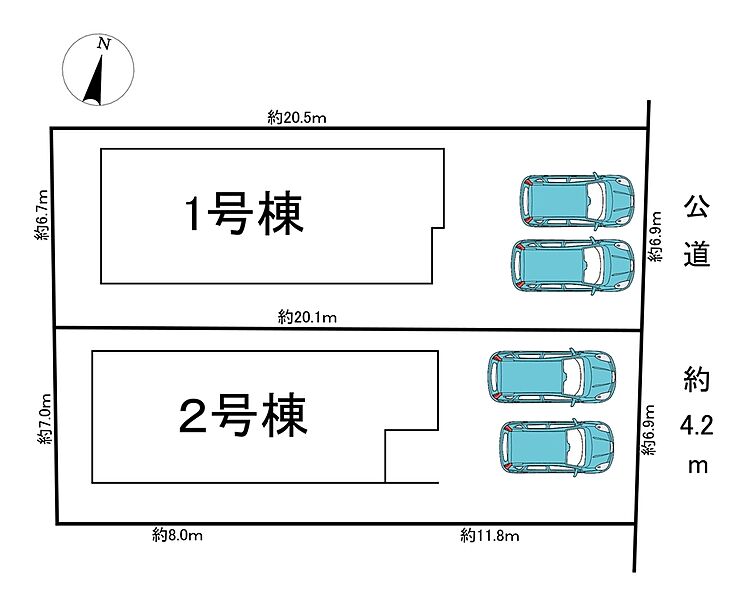 | 駐車場 | 並列2台可能 | 道路の幅員 | 東道路 幅員約4.2m |
