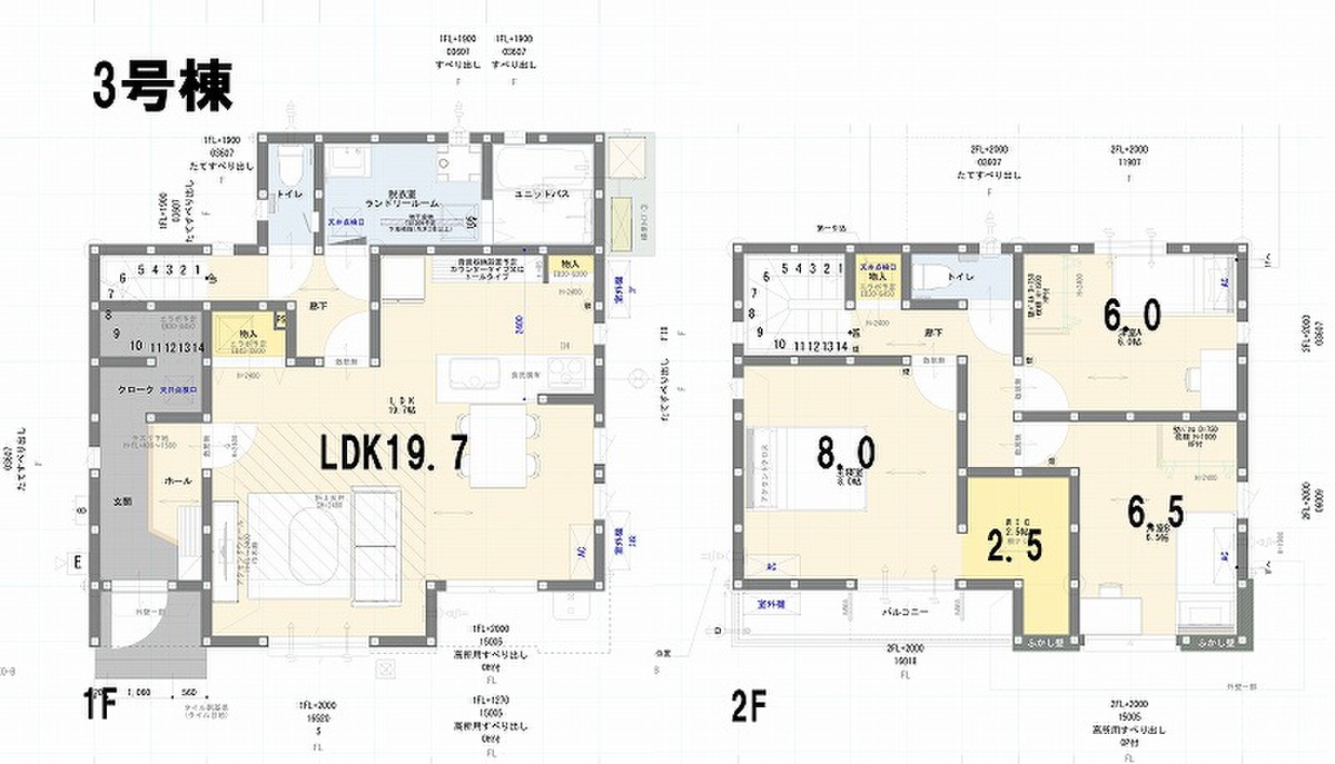 | 建物面積 | 96.89m2~106m2 | 土地面積 | 189.46m2(1区画)~286.76m2(3区画) |