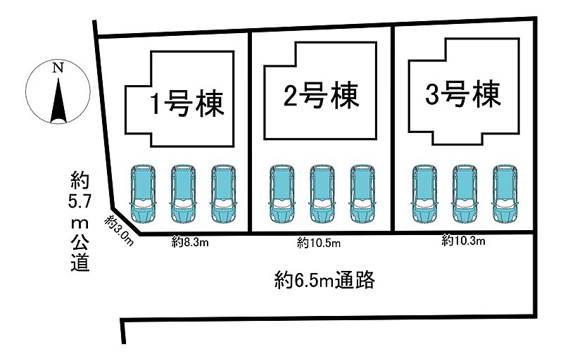 | 駐車場 | 3台 | 道路の幅員 | 西側 約5.8m |
