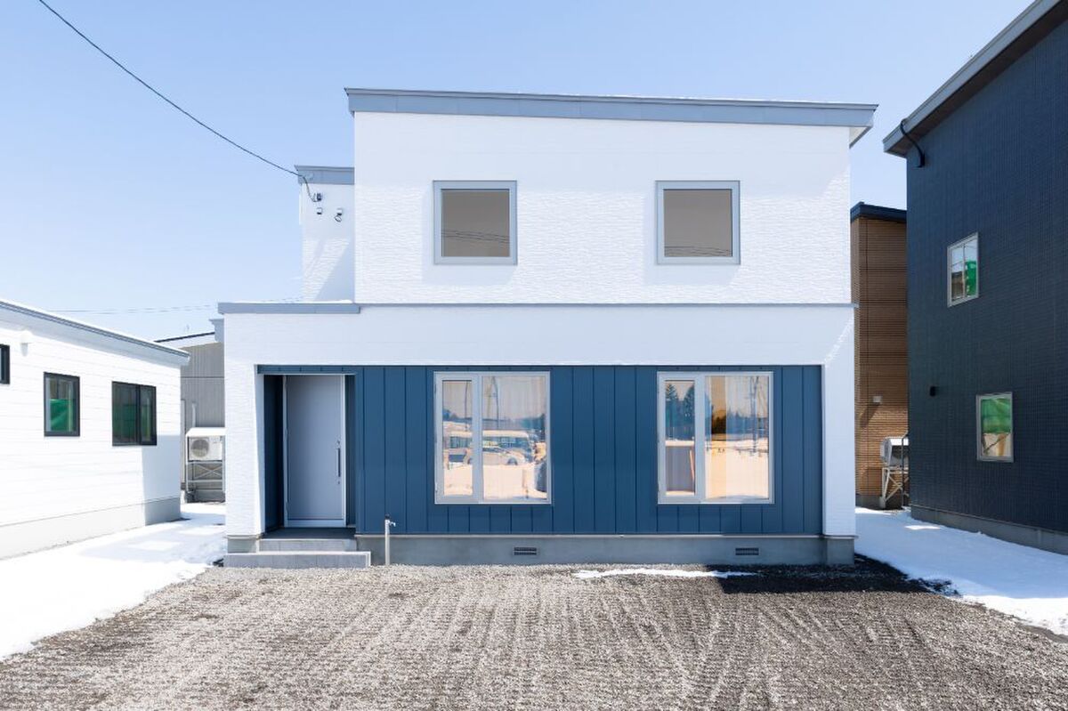 ■ブルーの金属サイディングが目を惹く外観