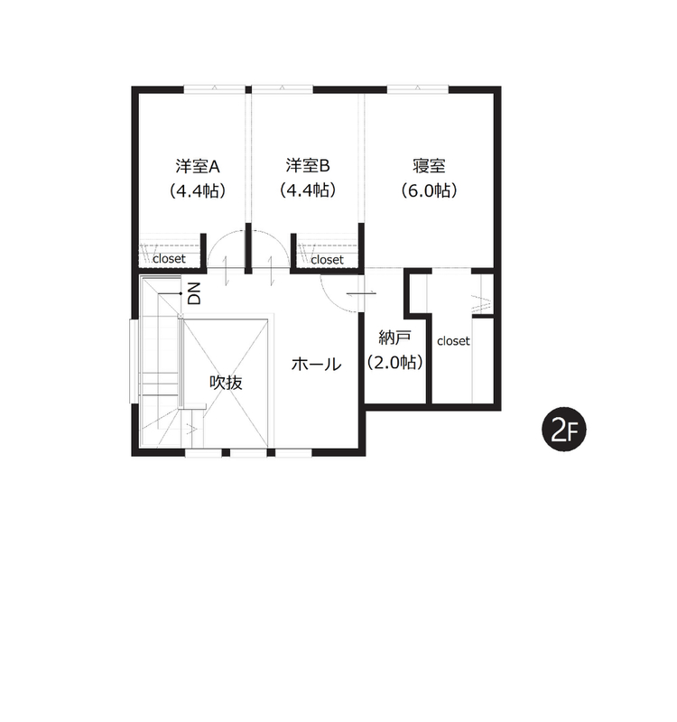 ■将来的に3部屋に区切ることができる2F洋室
