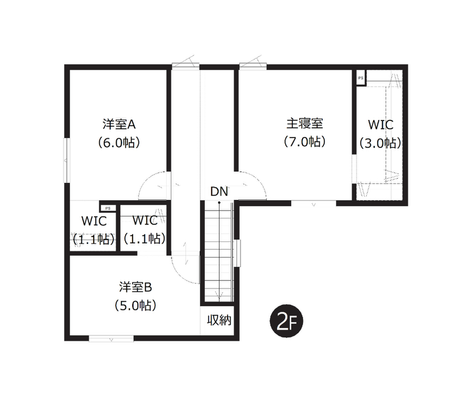 ■2F全室ウォークインクローゼット付きで収納充実、多目的に使えるフリースペースあり