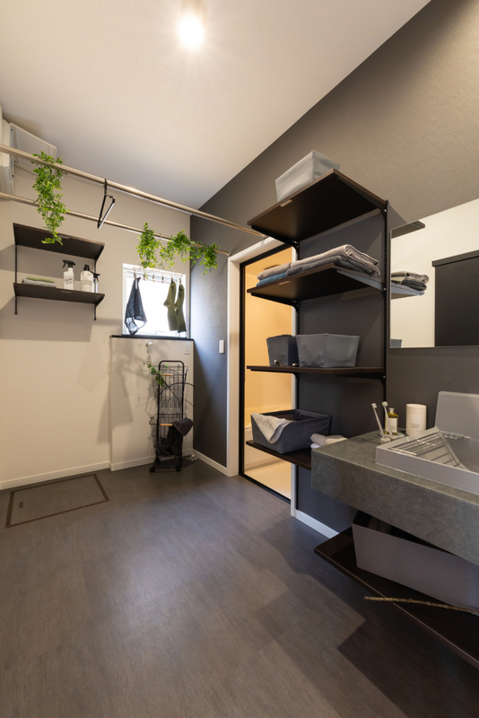 ■ブラック×ウォルナットの落ち着いた空間に和の趣をプラス