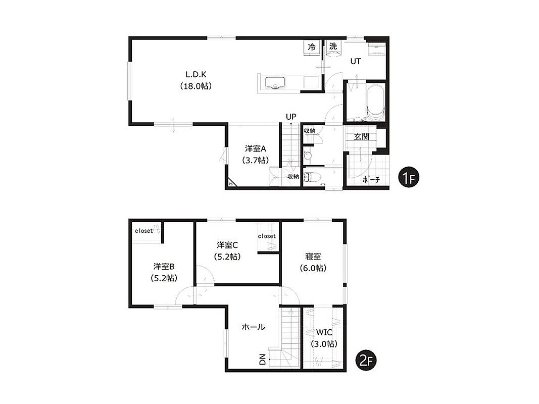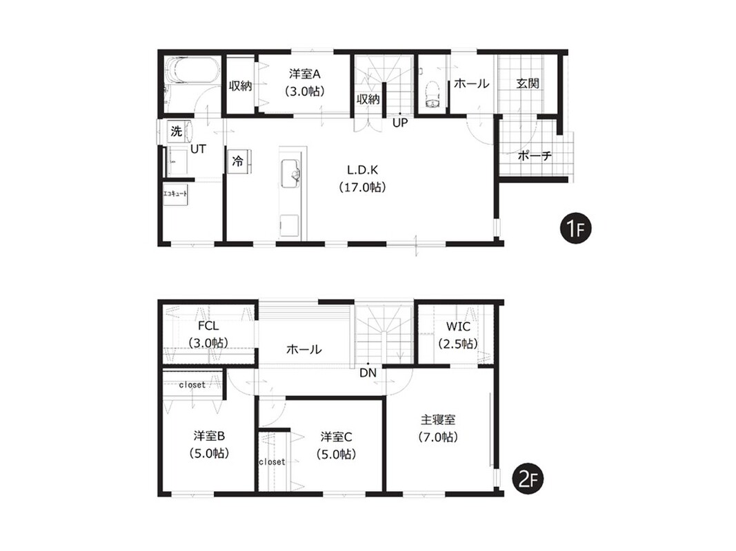 1Fランドリースペースや2Fカウンター付きホールなど工夫が充実。
