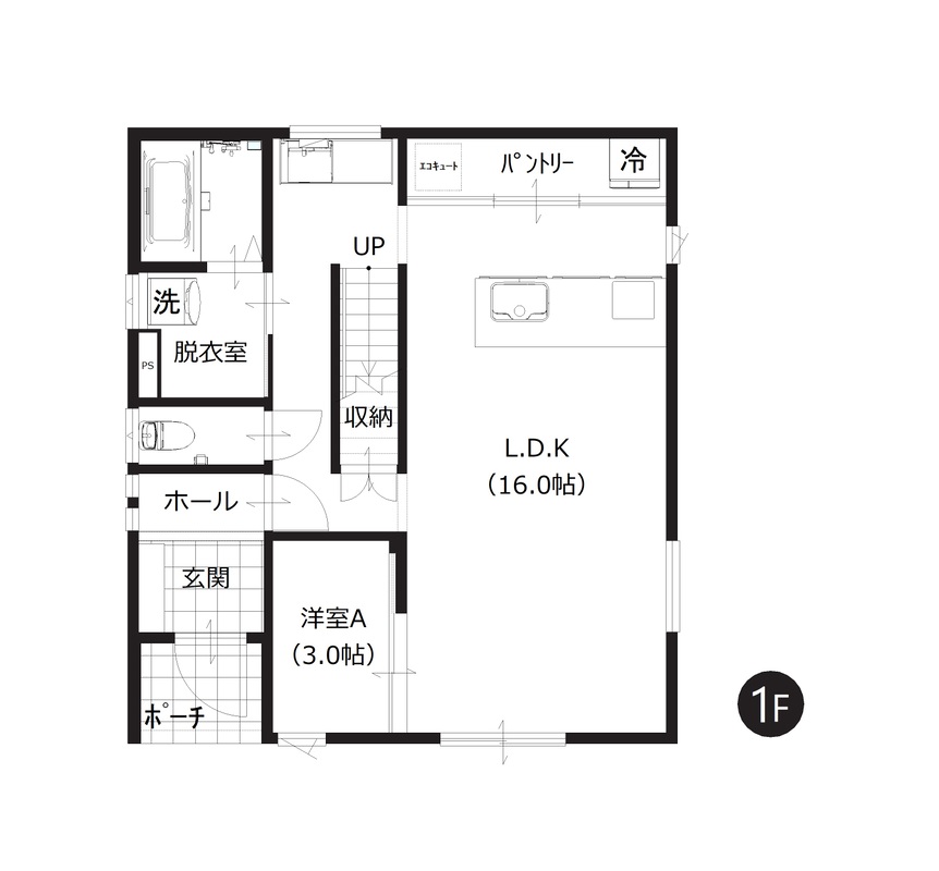 ・開放的なキッチンと、朝の混雑を解消する洗面台