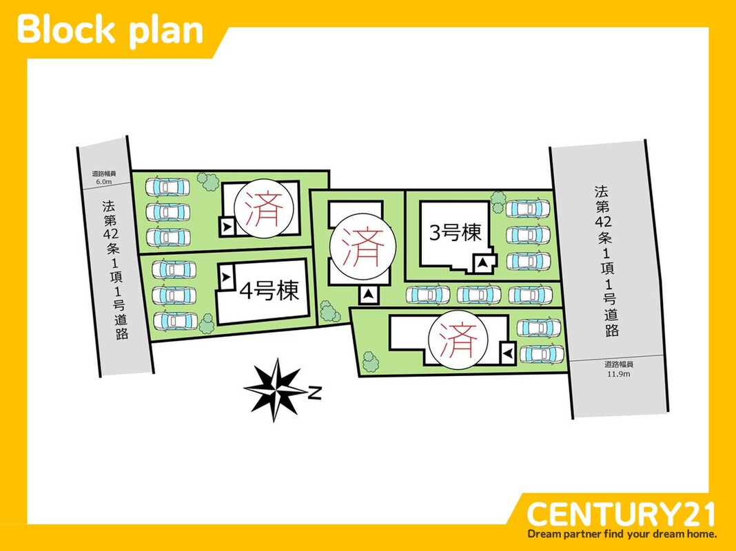 | 駐車場 | 駐車3台可 | 道路の幅員 | 南側 6.0m 北側 11.9m |