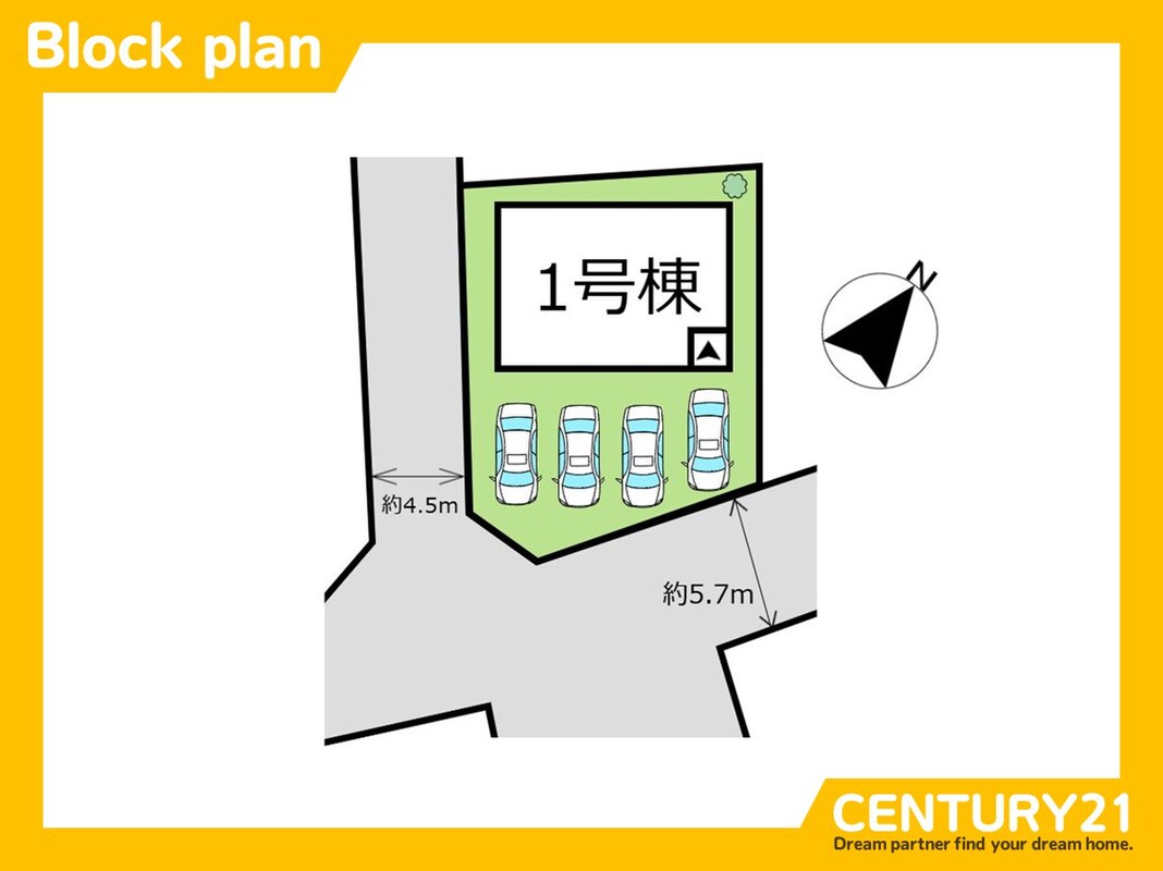 | 駐車場 | 駐車4台可 | 道路の幅員 | 東 5.76m、 南 4.52m |