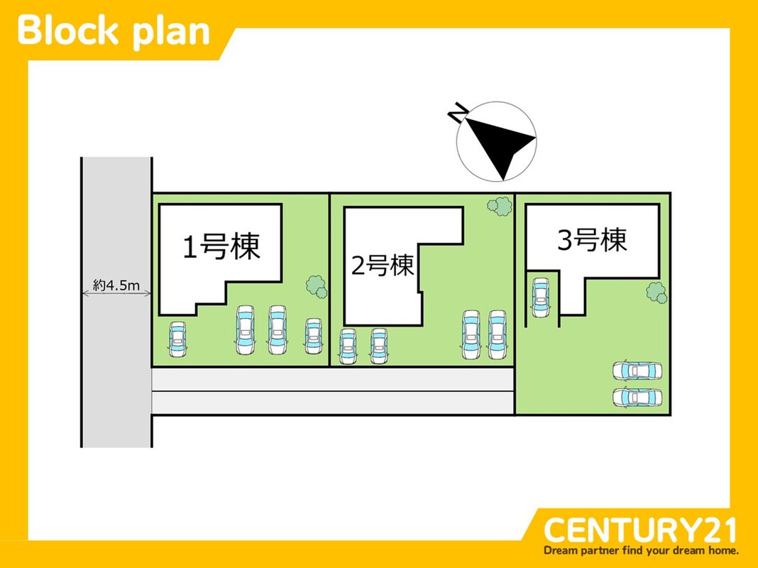 | 駐車場 | 駐車3台可 | 道路の幅員 | 北 4.5m |
