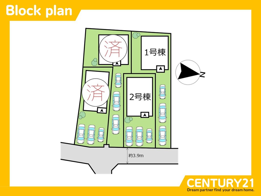 | 駐車場 | 駐車3台可 | 道路の幅員 | 東 3.9m |