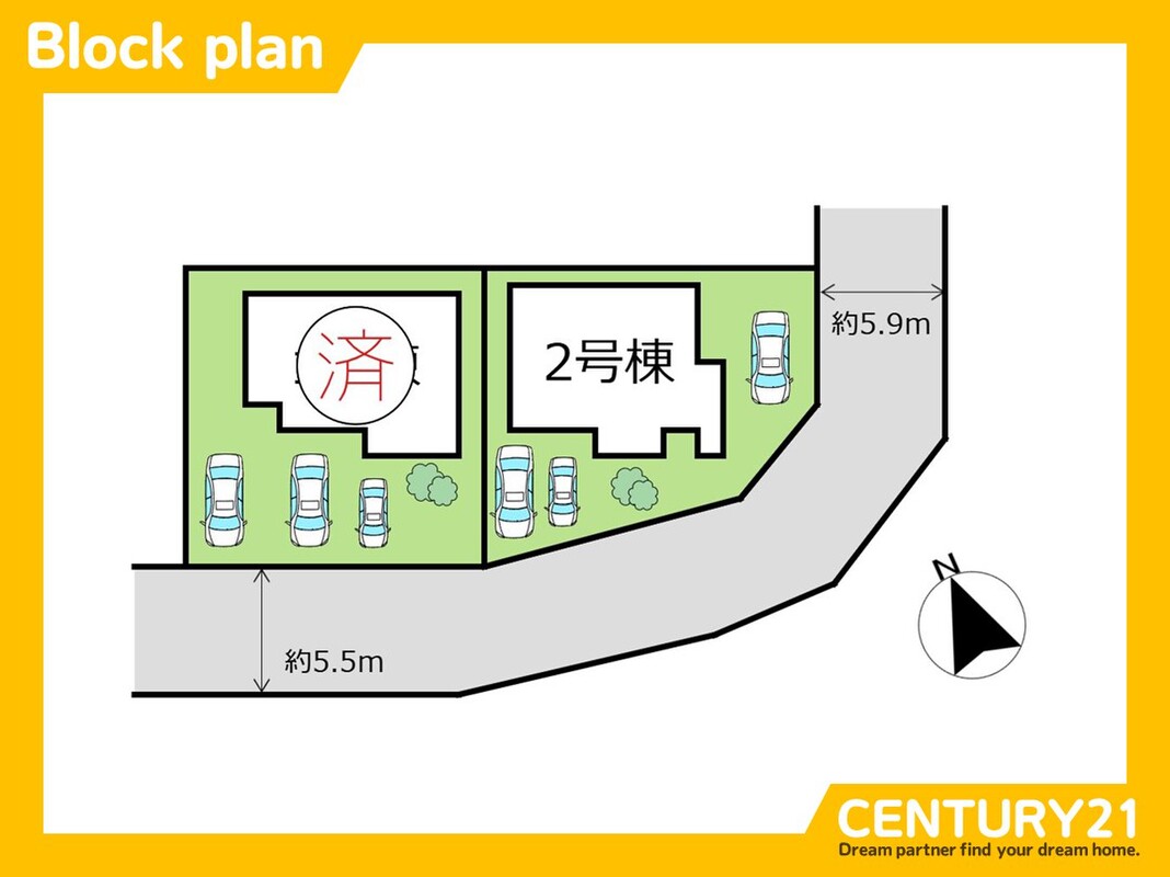 | 駐車場 | 駐車3台可 | 道路の幅員 | 東 5.9m、 南 5.5m |