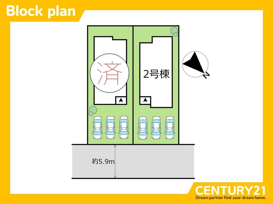 | 駐車場 | 駐車3台可 | 道路の幅員 | 北東 5.9m |