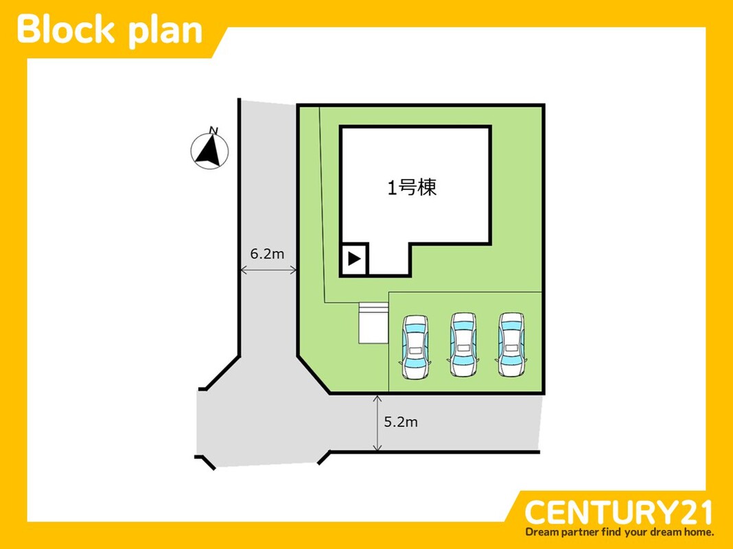| 駐車場 | 有 カースペース3台可 | 道路の幅員 | 二方 角地 南東 5.2m 南西 6.2m |