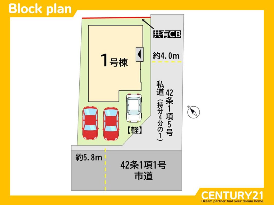 | 駐車場 | 駐車3台可 | 道路の幅員 | 南西 5.8m、 南東 4m |