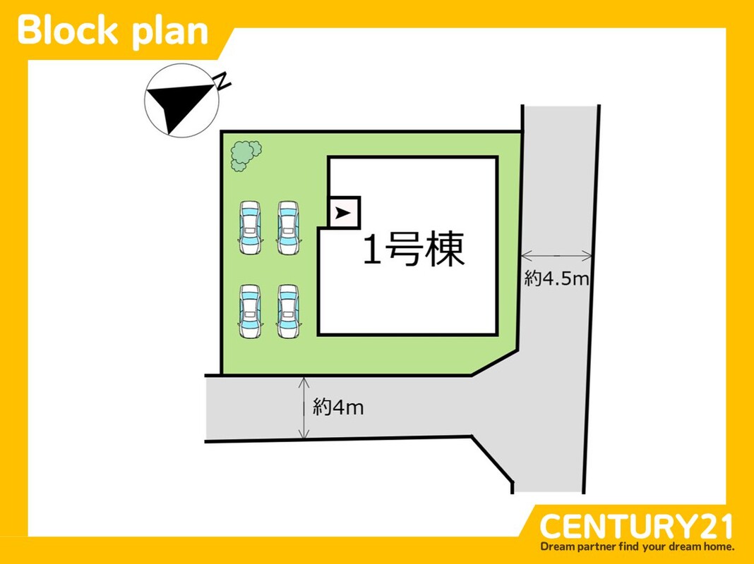 | 駐車場 | 駐車4台可 | 道路の幅員 | 北 4.5m 東 4.0m |