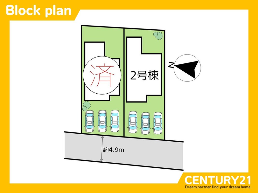 | 駐車場 | 駐車3台可 | 道路の幅員 | 西 4.9m |