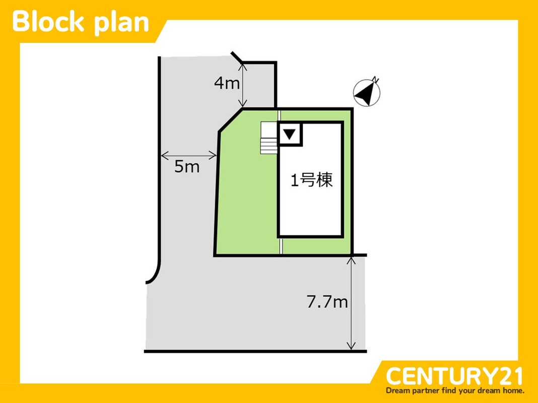 | 駐車場 | 有 カースペース2台可 | 道路の幅員 | 三方 角地 南東 7.7m 南西 5.0m 北西 4.0m |