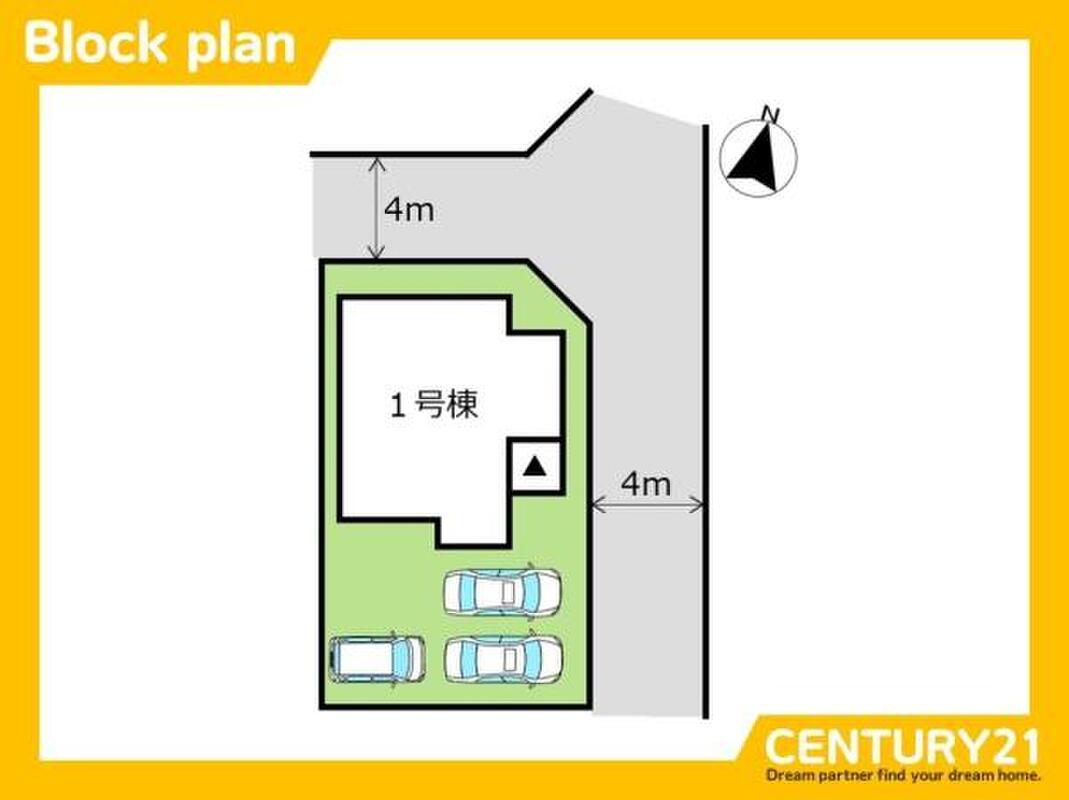 | 駐車場 | 有 カースペース 3台可 | 道路の幅員 | 二方 北側4m、東側4m |