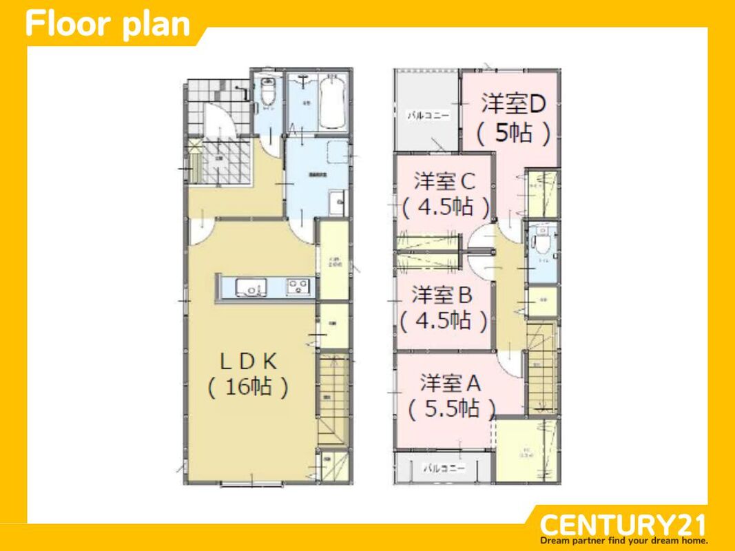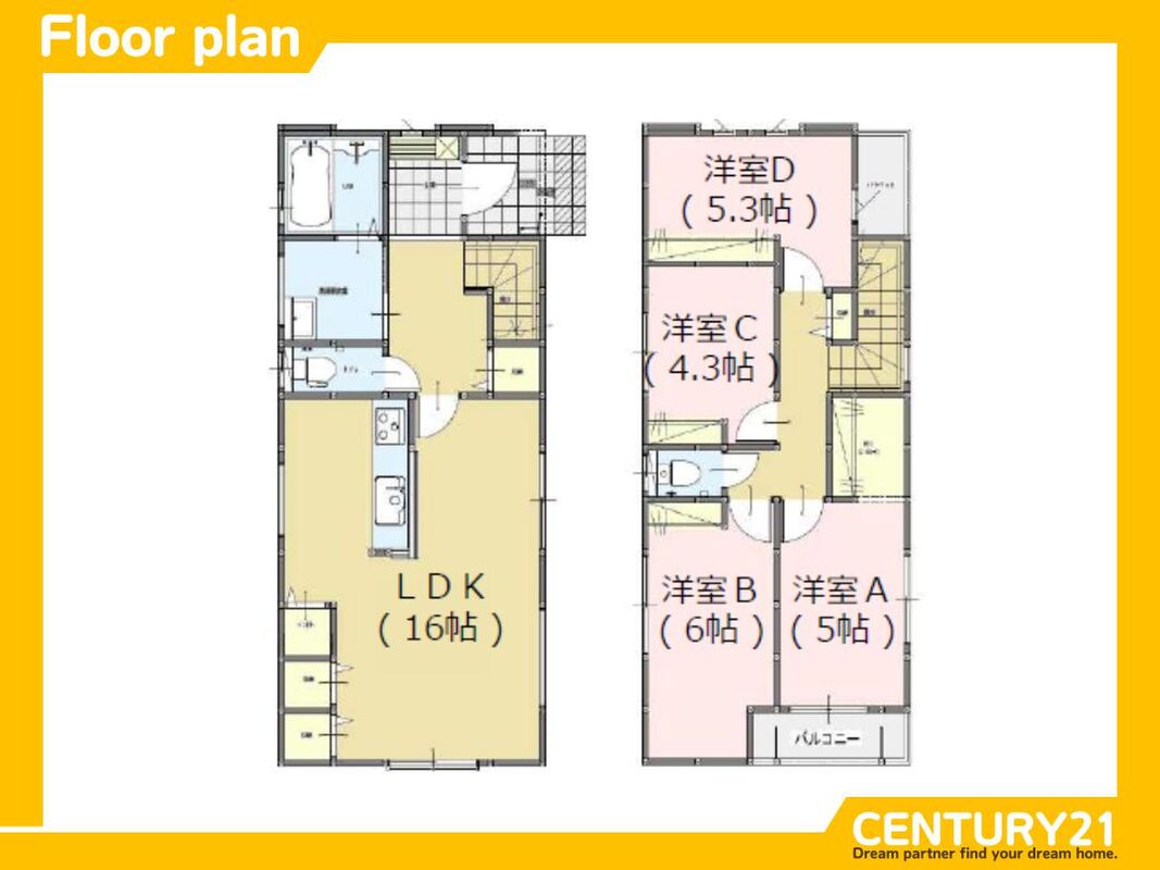 2号棟 間取り 4LDK 価格 4398万円 建物面積 93.57m2 土地面積 120.32m2 -